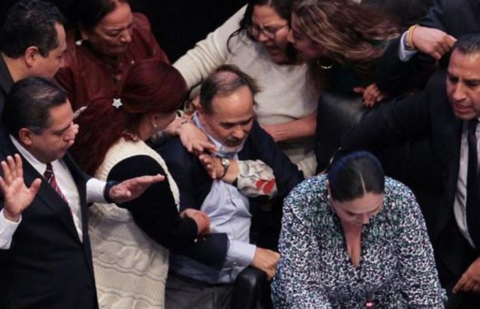 Aquel día, Gustavo Madero Muñoz subió a la tribuna al momento en que Fernández Balboa iba a tomar la protesta de Piedra Ibarra como ombudsperson, se acercó hasta el escaño de la presidenta del Senado y en ese espacio forcejeó con senadores y senadoras de Morena.