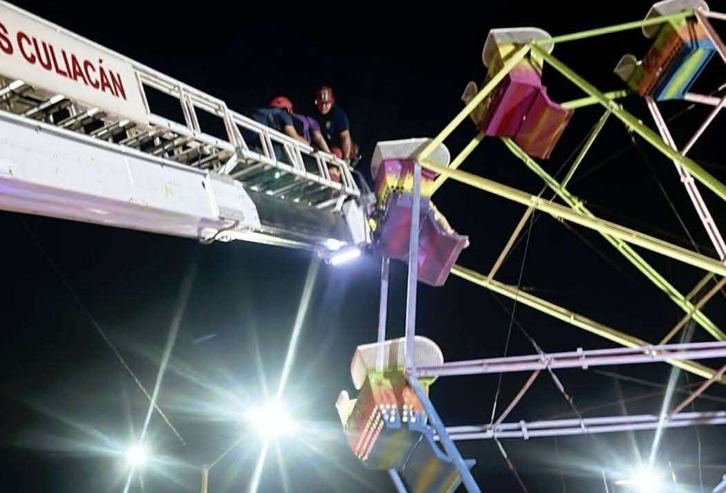 Fue minutos después de las 19:00 horas de la noche de este sábado cuando se reportó a las autoridades personas atrapadas en la rueda de la fortuna por falla mecánica y tras el reporte al lugar se movilizaron elementos de Bomberos Veteranos Culiacán, personal de Protección Civil del Estado y del Municipio, así como paramédicos del Centro Regulador de Urgencias Médicas (CRUM).