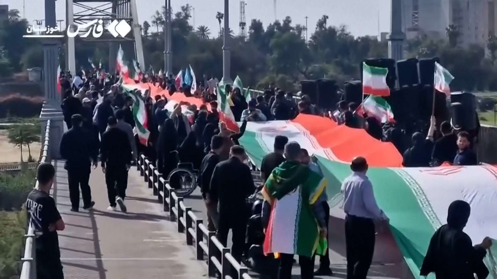 Las movilizaciones se replicaron en otros puntos del país. En Dezful (suroeste) estudiantes formaron una cadena humana sobre el puente histórico de la ciudad, con más de mil 700 años de antigüedad, en su defensa ante las amenazas de Trump.