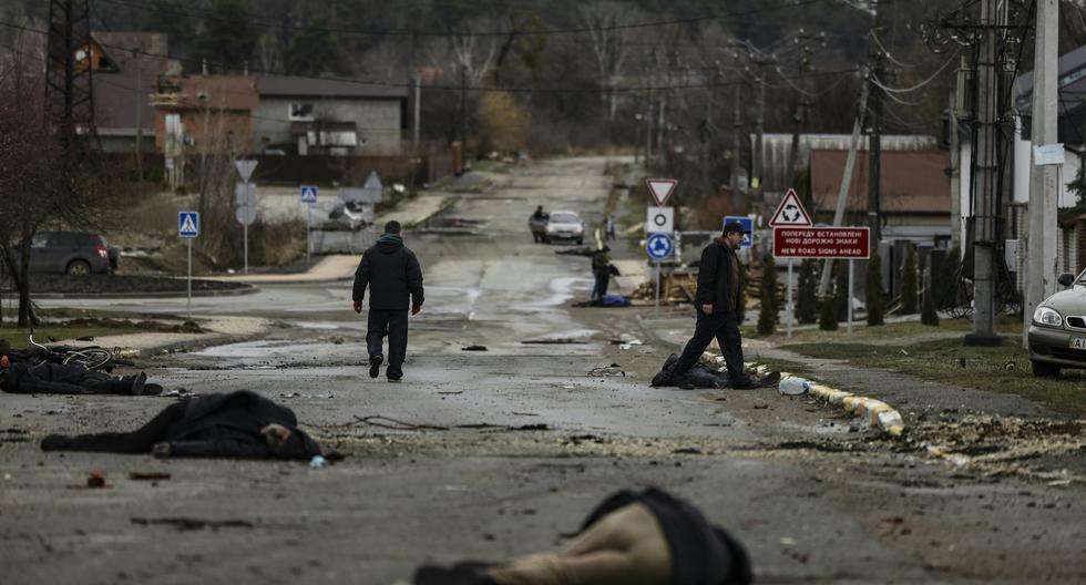 Los cuerpos de al menos 20 personas vestidas con ropa de civil estaban esparcidos el sábado en una calle de Bucha, una ciudad al noroeste de Kiev recuperada por las fuerzas ucranianas tras su invasión por tropas rusas, informó un periodista de la AFP.