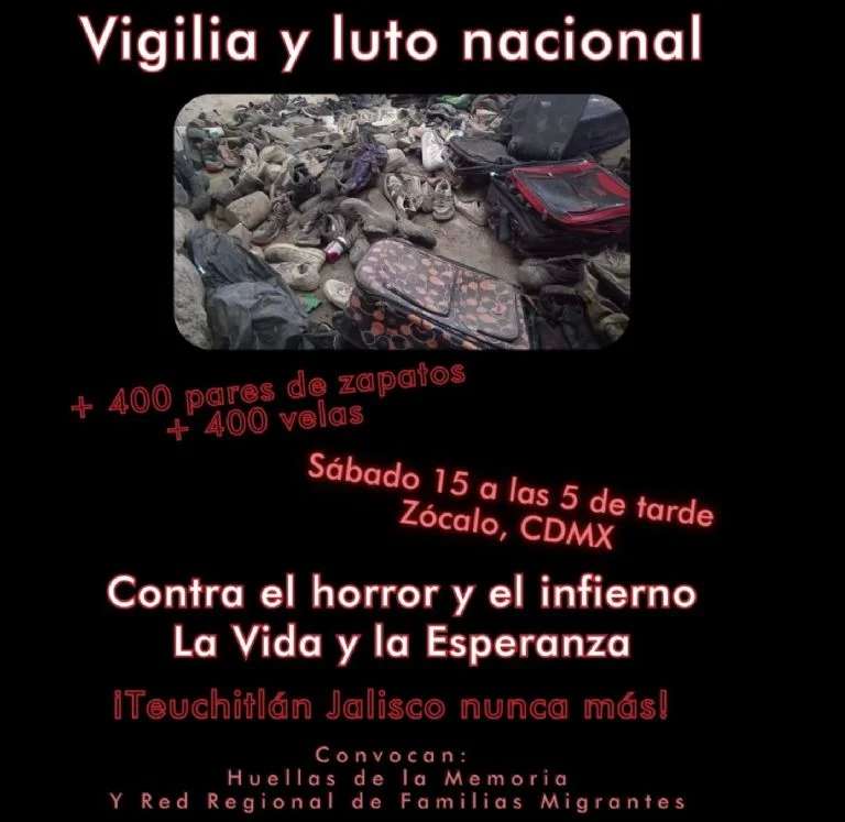 En redes sociales, la organización publicó este martes el llamado a luto nacional de los colectivos Huellas de la Memoria y Red Regional de Familias Migrantes, quienes también difundieron su convocatoria para que las personas se sumen en acto de protesta contra las desapariciones en las principales plazas de Monterrey, Guadalajara, Querétaro, Saltillo, Torreón, Colima, Zacatecas, Morelia y Fresnillo.