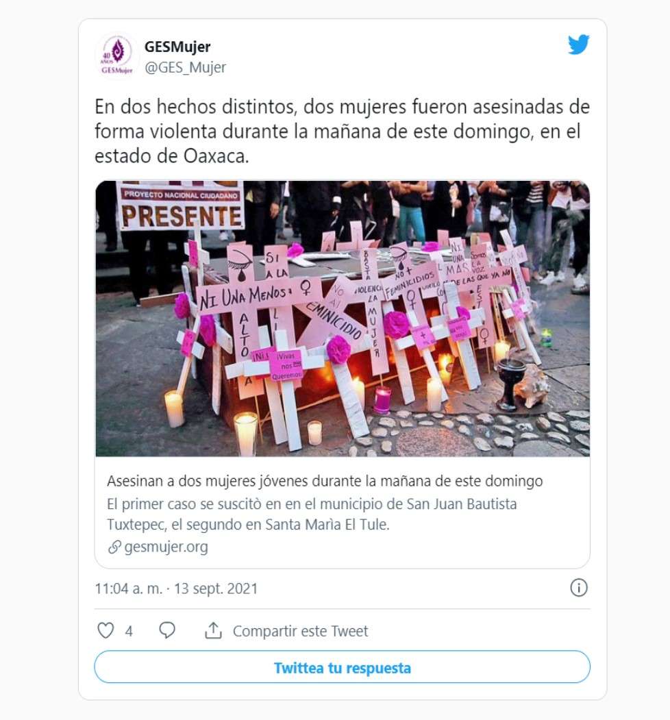 Oaxaca. - Ni la pandemia ni la Alerta por Violencia de Género que desde hace dos años se aplica en Oaxaca detienen los feminicidios. En los primeros 14 días de septiembre nueve oaxaqueñas han sido asesinadas, de acuerdo con los datos hemerográficos del colectivo Ges Mujer.