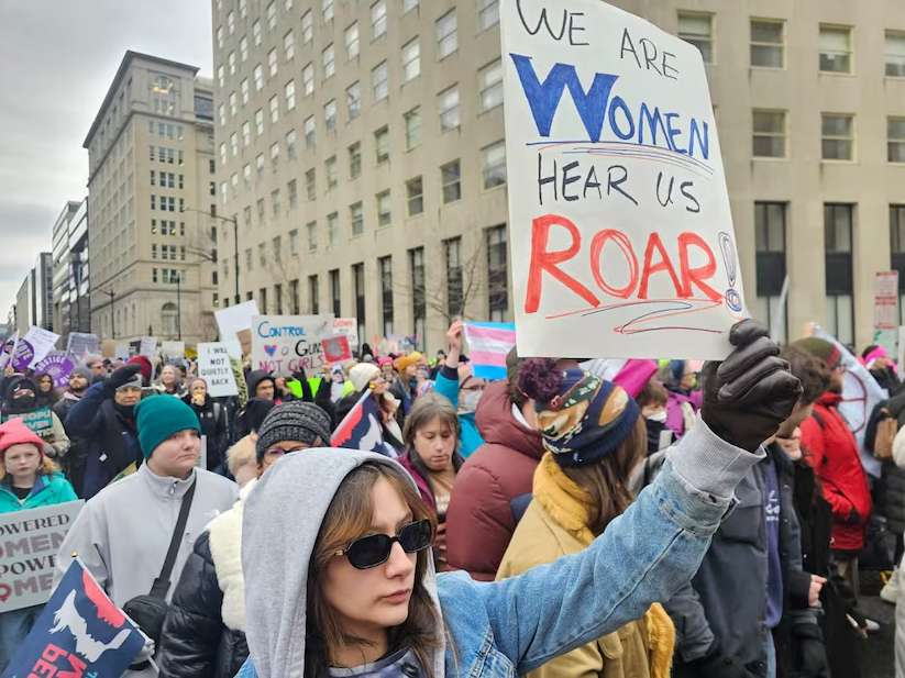 Una de las marchas más numerosas fue contra las políticas con las que va a arrancar Trump que afectarán a los derechos de las mujeres y de las comunidades vulnerables, como LGBTQ+.