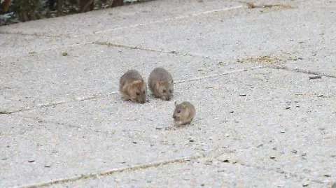 En el video se observan al menos siete ratas hurgando en la calle a plena luz del día, junto con una paloma que no se inmuta ante la presencia de los roedores.
