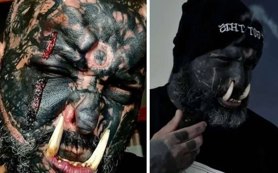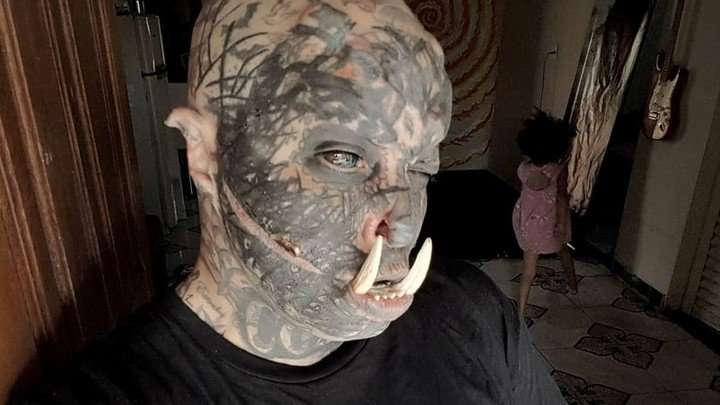 El rostro de Rico Ledesma, hombre brasileño de 42 años, sorprende por su aspecto físico, pues ya no tiene apariencia humana. El llamado orco infernal tiene muchos tatuajes, mutilaciones e implantes y colmillos. Todo esto para cumplir lo que tanto deseaba cuando era pequeño.