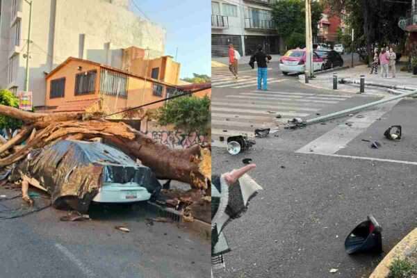 En la alcaldía Benito Juárez se reportaron dos incidentes: la caída de un árbol y de un poste. En todos los casos no se registraron personas lesionadas.