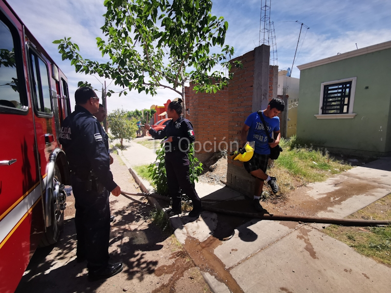 Delicias.- El reporte de un incendio en una vivienda con personas atrapadas movilizó a cuerpos de emergencia activos y en descanso en el fraccionamiento Las Palmas.