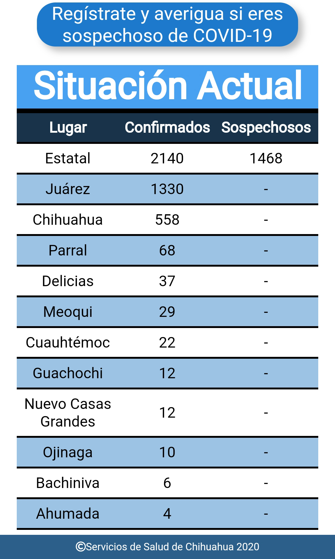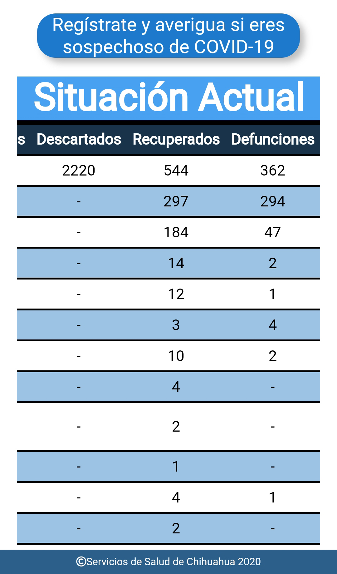 Delicias.-El aumento de personas infectadas por covid-19 no frena, ahora Delicias tiene un caso más y suman 37, mientras tanto dos lograron vencer el virus.