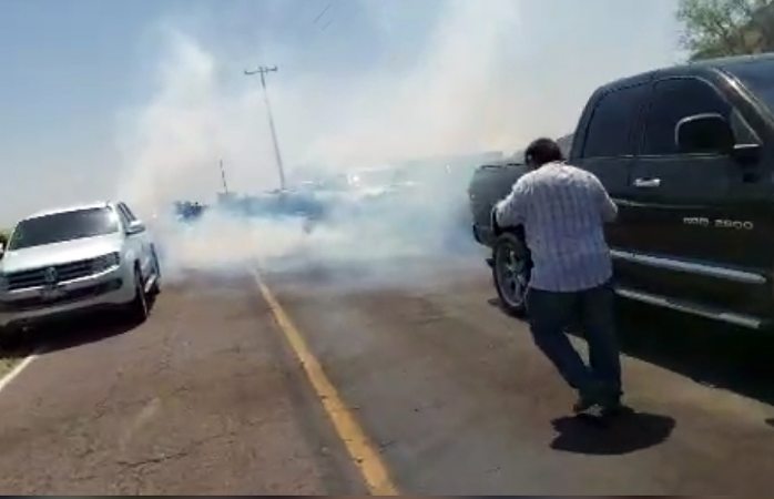 Rosales.- Lo que parecía un primer entendimiento terminó en un enfrentamiento hace algunos minutos al disparar balas de goma, bombas de gas lacrimógeno y piedras, la Guardia a los productores que intentan evitar el desfogue de la presa Francisco I. Madero.