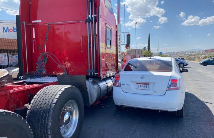 El percance se dio a la altura de la calle 66, donde el trailer marca Kenworth sin caja, y el vehículo Sentra de modelo atrasado, chocaron de costado.