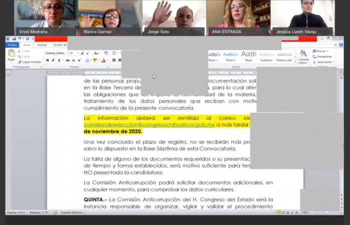 Chihuahua.- La Comisión Anticorrupción del Congreso del Estado, se reunió en días pasado para emitir la convocatoria para la elección de quienes integrarán el Comité de Participación Ciudadana del Sistema Estatal Anticorrupción.