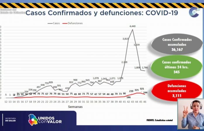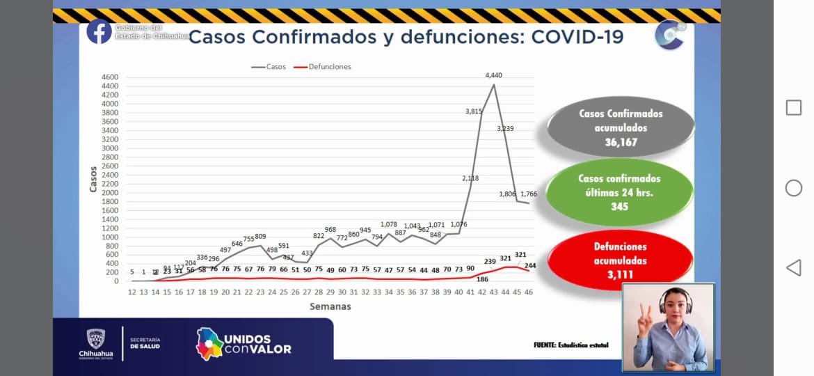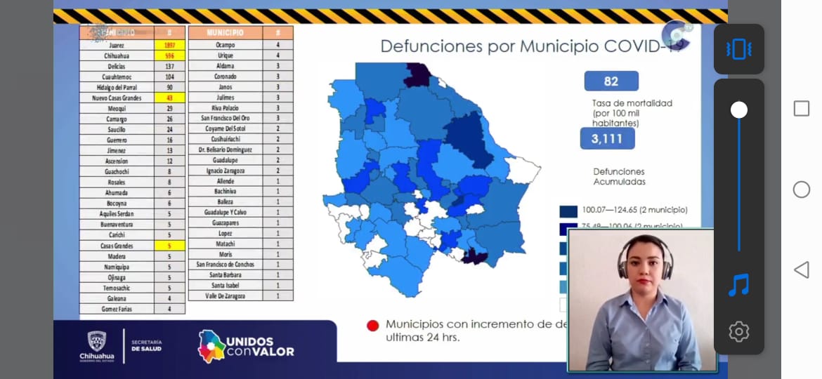 En cuanto a las defunciones, se sumaron 29 nuevos decesos, los cuales se registraron en los municipios de Juárez, Chihuahua, Nuevo Casas Grandes y Casas Grandes.