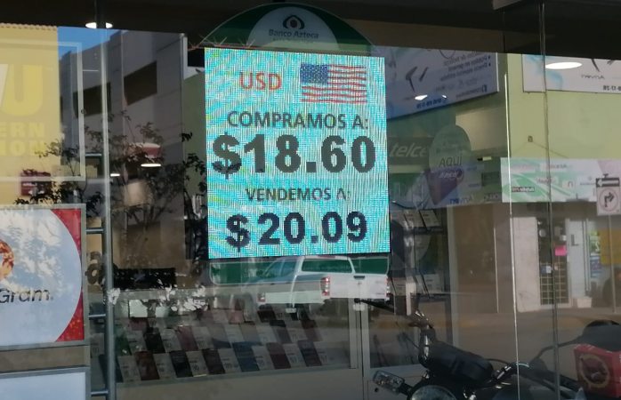 En cuanto a banco Azteca este tiene el dólar a a la compra en $18.60 perdiendo 20 centavos este día y a la venta en $20.09 perdiendo aquí hasta trece centavos.