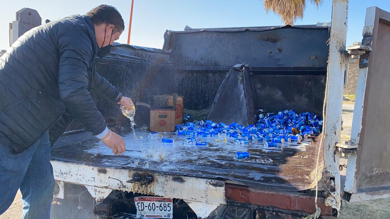 Delicias.- El departamento de Gobernación Municipal procedió a la destrucción de 750 bebidas embriagantes decomisadas en ventas clandestinas durante los operativos en la ciudad.