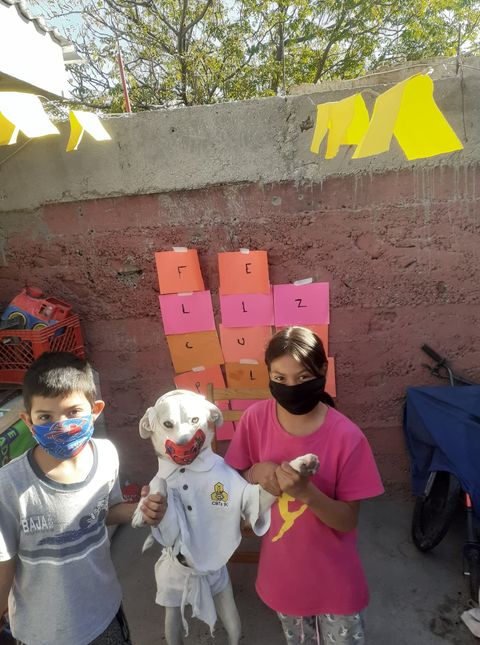 El festejo se llevó a cabo en el patio del domicilio de los menores en donde colocaron hojas de colores con la leyenda “Feliz Cumpleaños” dedicada a su mascota llamado Oso.