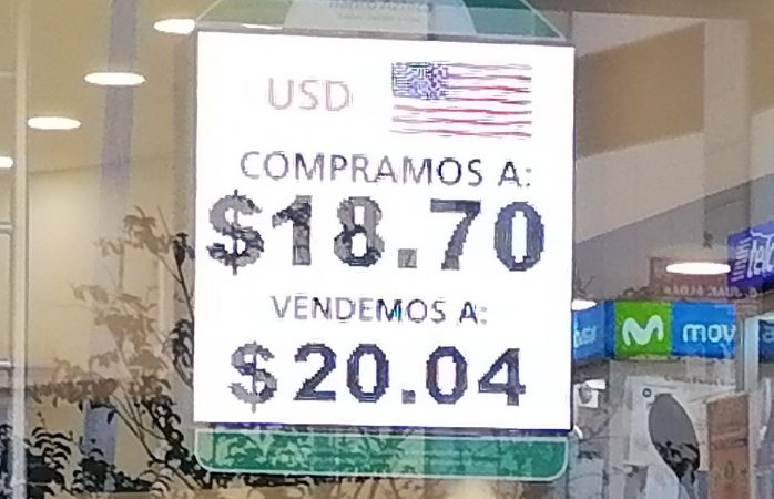 La casa de cambio cotizó este día el dólar a la compra en $18.80 y a la venta en $20.00 manteniendo estos precios por segundo día consecutivo.