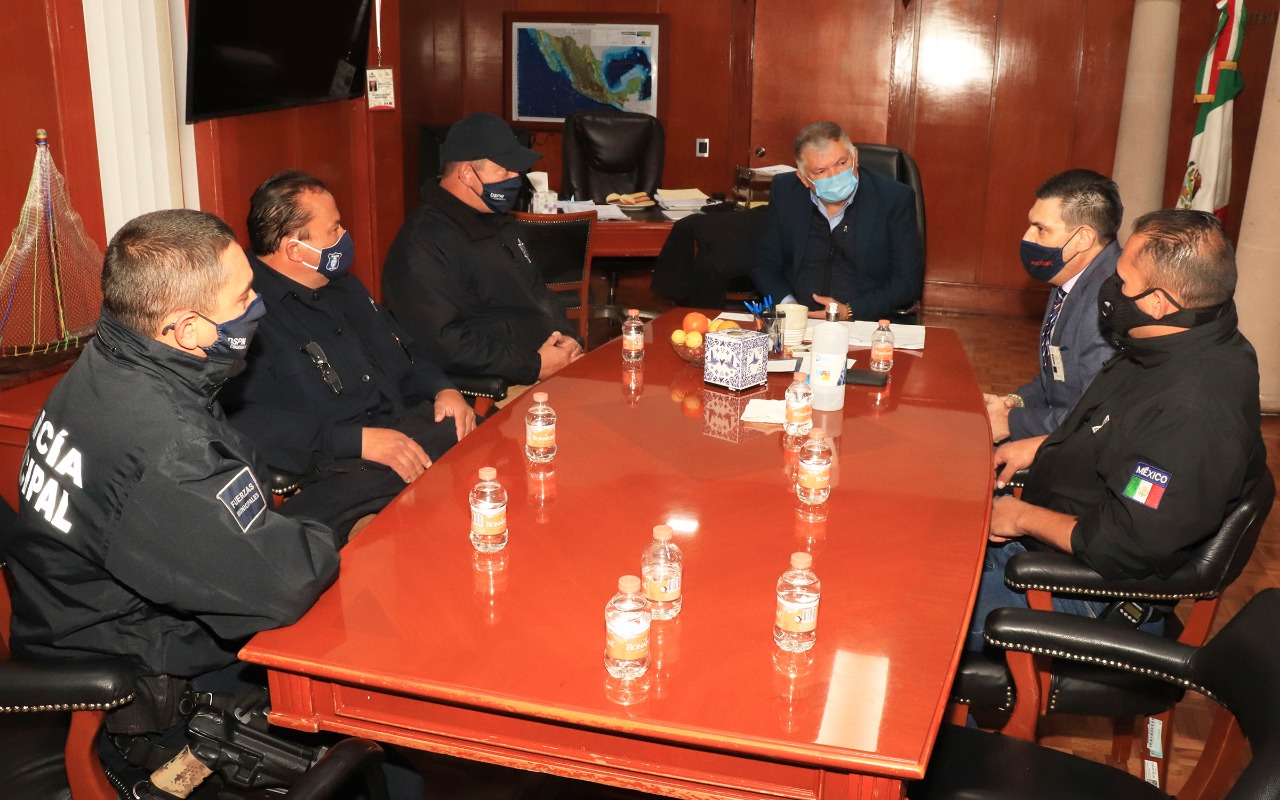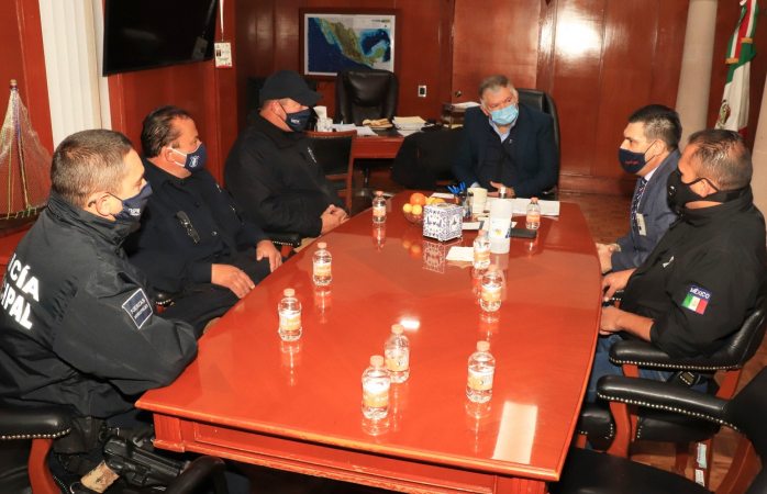 En el acercamiento también estuvieron presentes el Director Administrativo de la Dirección de Seguridad Pública Municipal, Juan Carlos Rentería Villegas; el coordinador operativo del Mando Único, Enrique Tarango Muñiz; el comandante operativo del Mando Único, Sergio Proa Flores y el Fiscal en Jefe de la Fiscalía General de la República, Jesús Durazo Hoyos.