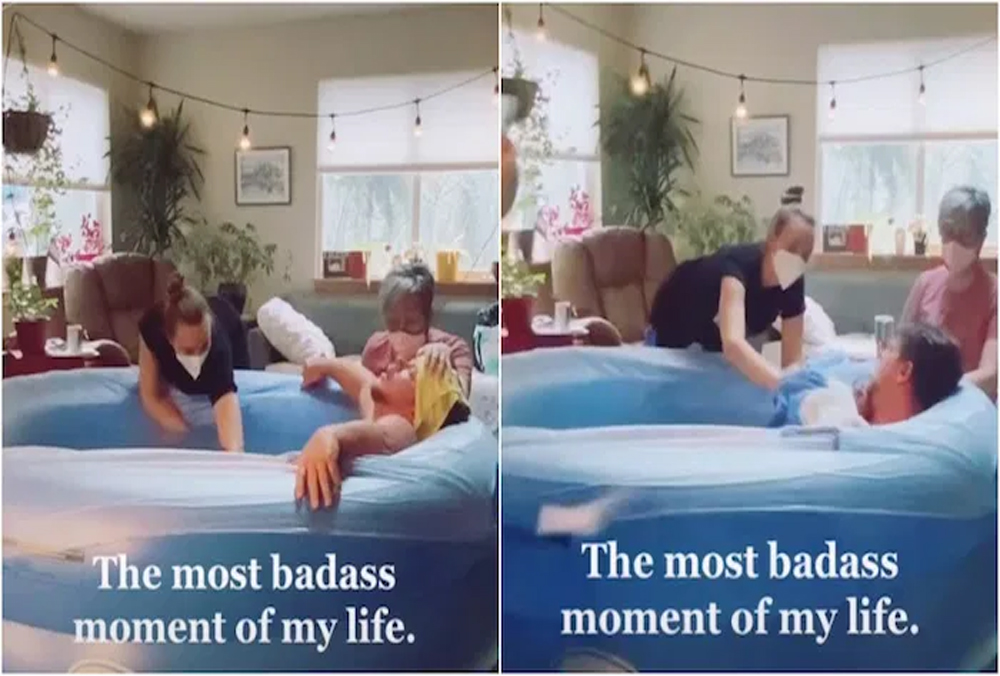 En el video, se muestra cómo Danny da a luz dentro de una alberca inflable en la sala de su casa con la ayuda de unas parteras.