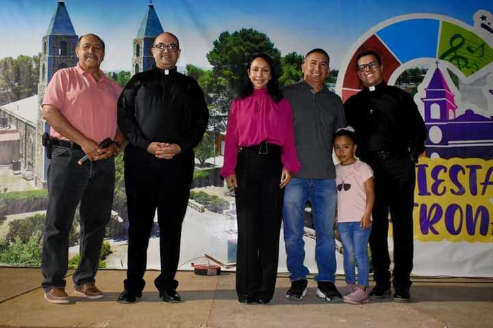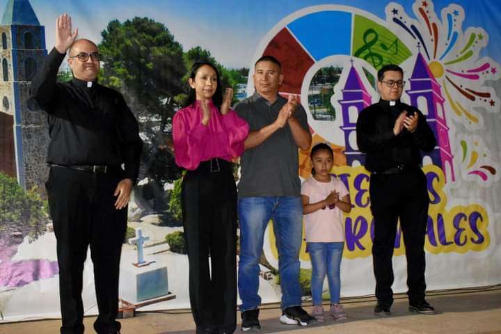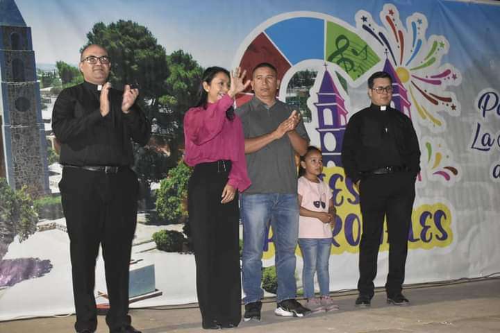 Ante un nutrido público asistente al Teatro del Pueblo, el párroco Juan De Lara Muñoz y la alcaldesa Ivonne De La Hoya Venzor, dieron el arranque al festejo tradicional, acompañados del diácono Jesús Romero y el titular del DIF municipal, Adrián Villalobos Ángel.