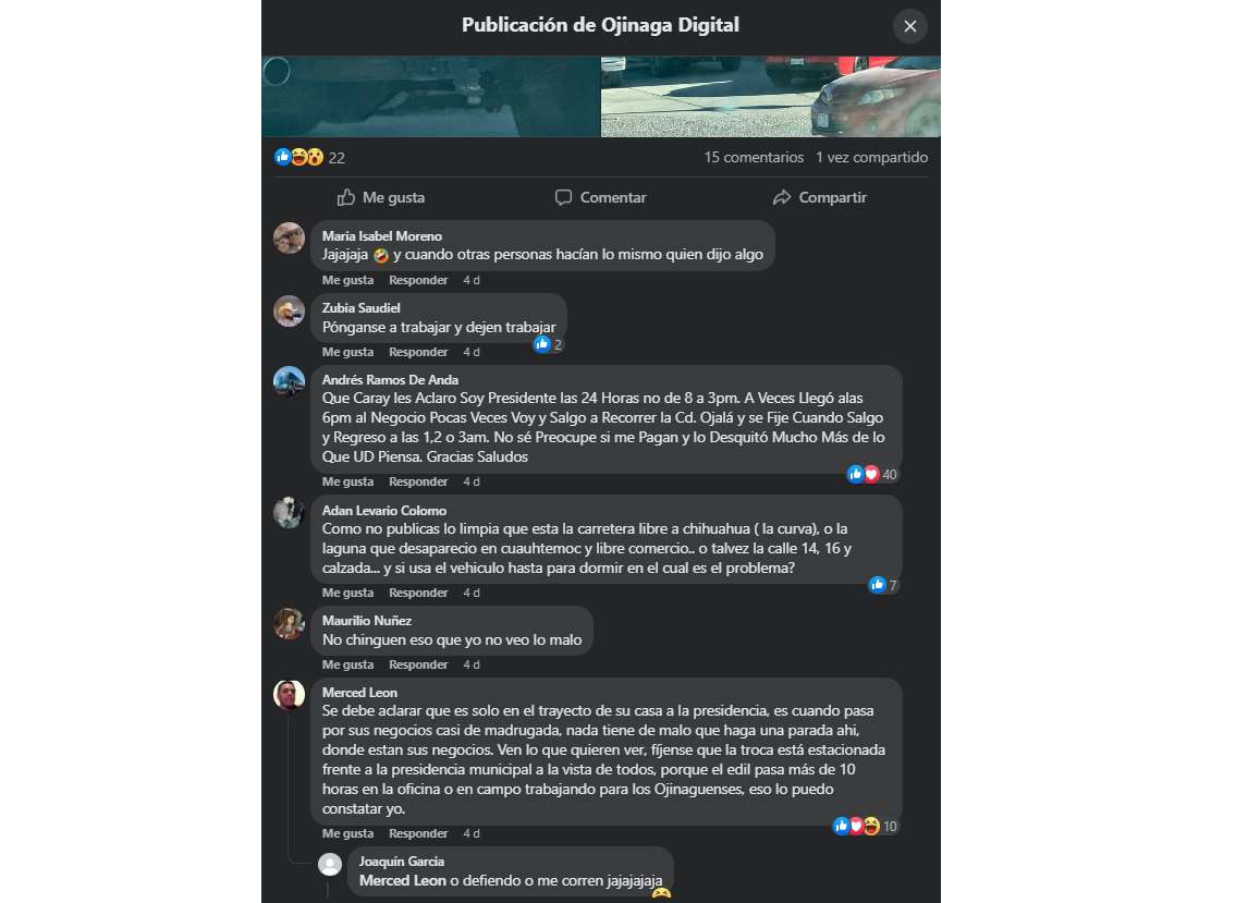 Esta denuncia se publicó por medio de redes sociales en donde el alcalde de la ciudad de Ojinaga, Andrés Ramos De Anda publicó su opinión al respecto en comentarios.