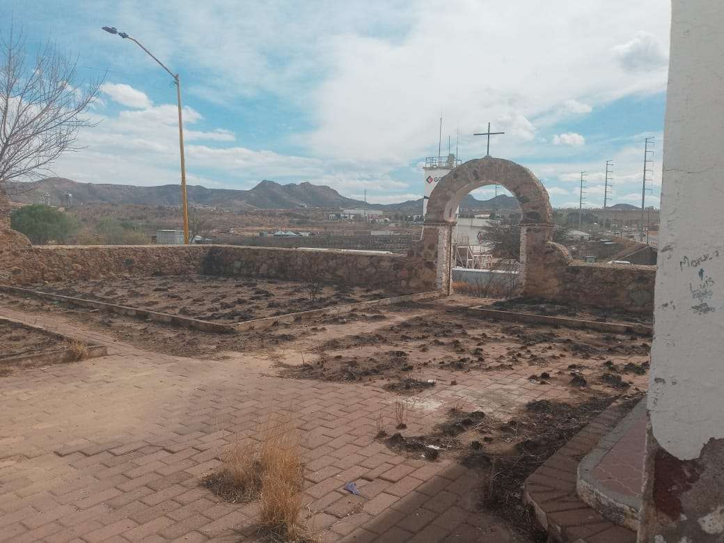 Contiguo al asilo de San Vicente, es donde se ubica la finca de la iglesia, misma que a sus alrededores se encuentra plagada de hierba y maleza al igual que parte de su jardín interior.