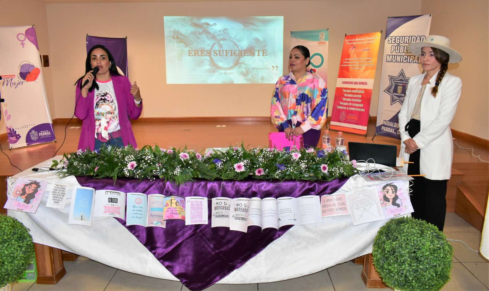La presidenta del DIF Municipal, licenciada, Gema Quiñónez Barrón, fue la encargada de dar la bienvenida a las participantes en el taller, así como a la conferencista parralense Eva Lazos, Master en Administración y Coach Transformacional por el Tecnológico de Monterrey, invitada por la licenciada Alma Peñalver, titular del CAPPSIFAM.