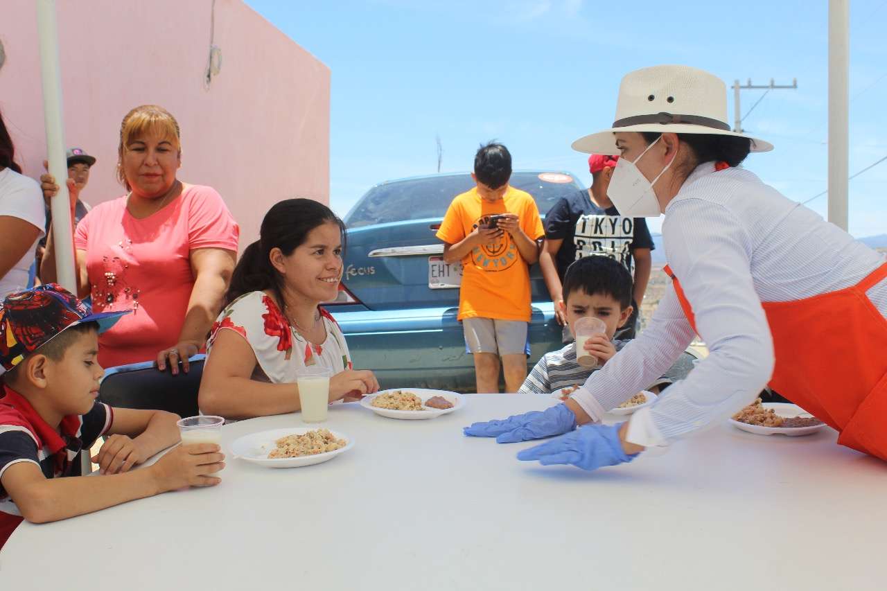 El júbilo por ver de nueva cuenta a la Presidenta del Desarrollo Integral de la Familia se hizo notar de inmediato en el Ejido Guillermo Baca y la comunidad de la Gomera donde luego de la veda electoral se reanudó el programa alimentario para niñas y niños de la zona rural.