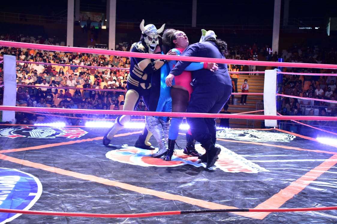 La lucha súper estelar protagonizada por las tercias de Gronda-Mamba y Polvo de Estrellas superó a Ghefar-Coco Loco-y Especial llevándose la gran noche de lucha libre que se convirtió en un verdadero show interactivo para el agrado de las familias asistentes al gran evento.