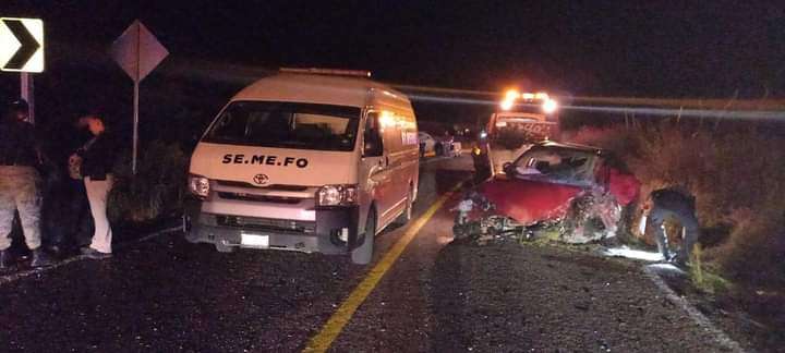 Parral.- El trágico percance se suscitó la noche de este sábado a la altura del kilómetro 23 de la carretera que conduce de Parral al municipio de Guadalupe y Calvo, donde se constituyeron elementos de las diferentes corporaciones tras ser alertados sobre el fuerte encontronazo entre dos vehículos.
