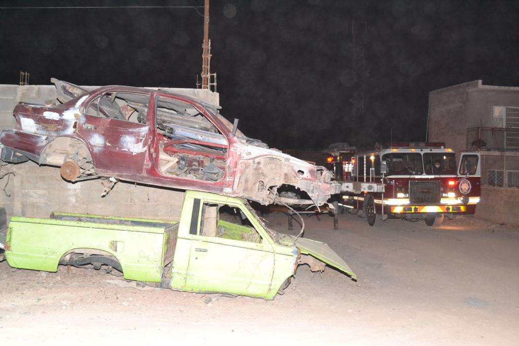 Chihuahua.- El reporte de un incendio en un yonke generó gran movilización por el cuerpo de bomberos y unidades de la Policía Municipal.
