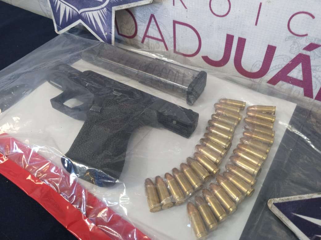 Ciudad Juárez.- Agentes de la Secretaría de Seguridad Pública Municipal arrestaron a Isaac R. y Edgar Fernando S. T., por su presunta responsabilidad en la comisión de delitos contra la ley federal de armas de fuego y explosivos.