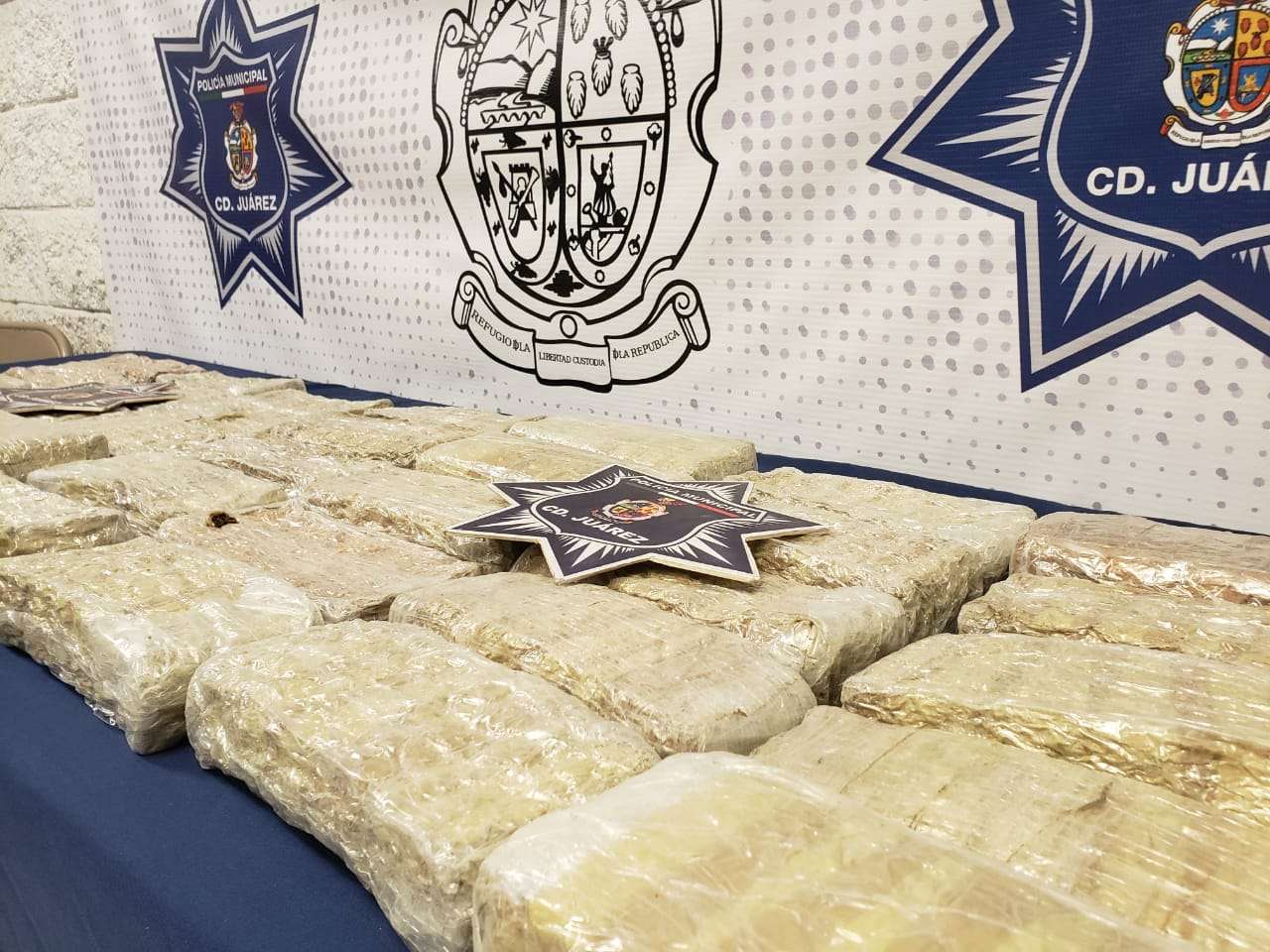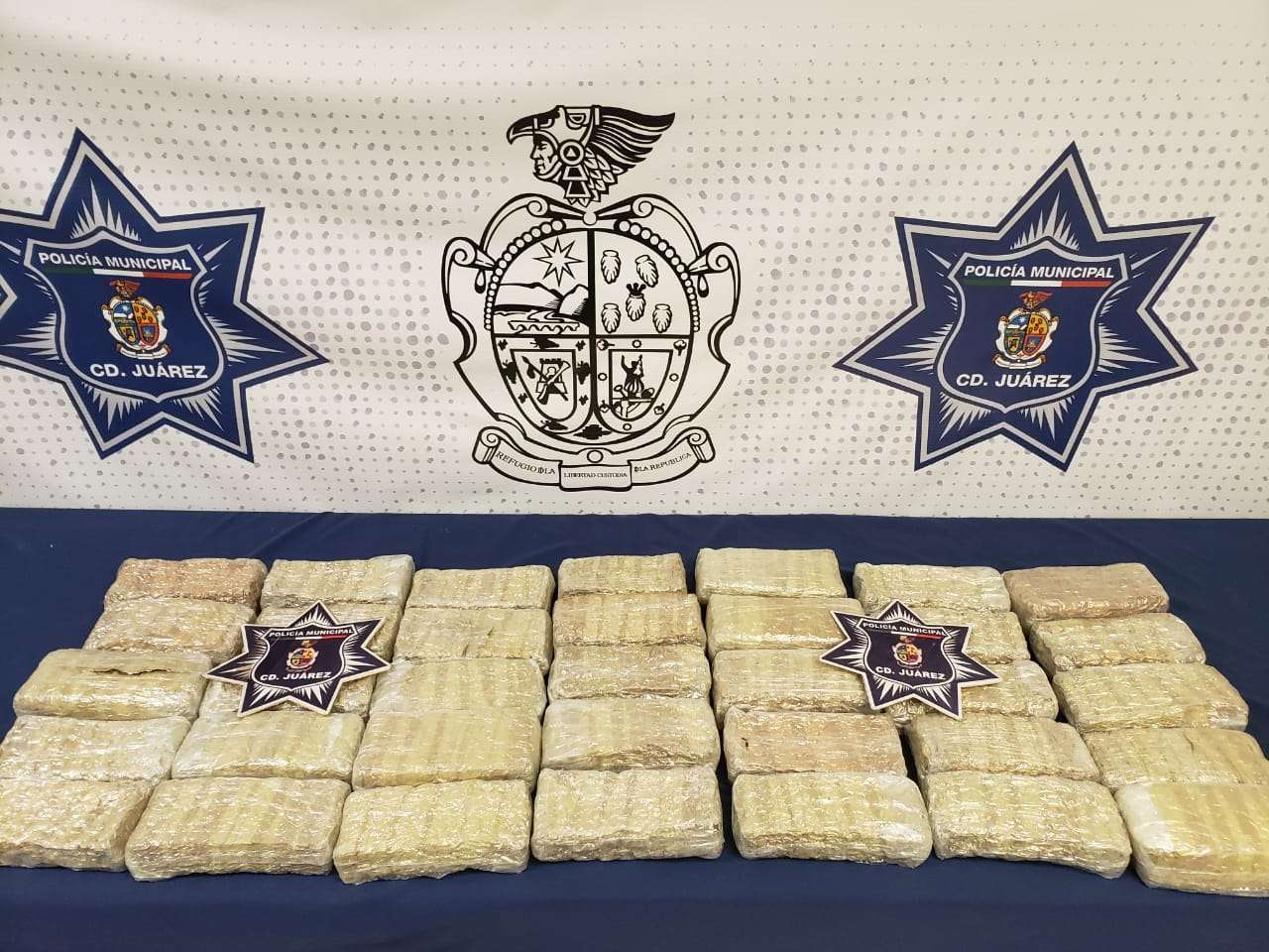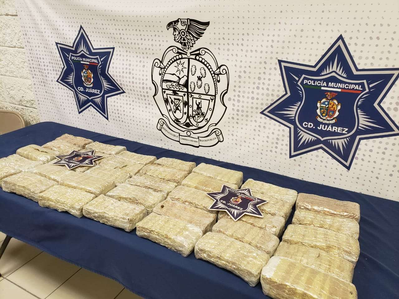 Juárez.- Agentes de la Secretaría de Seguridad Pública Municipal realizaron el aseguramiento de 35 paquetes de marihuana, mismos que fueron encontrados en el interior de un vehículo abandonado en la vía pública.