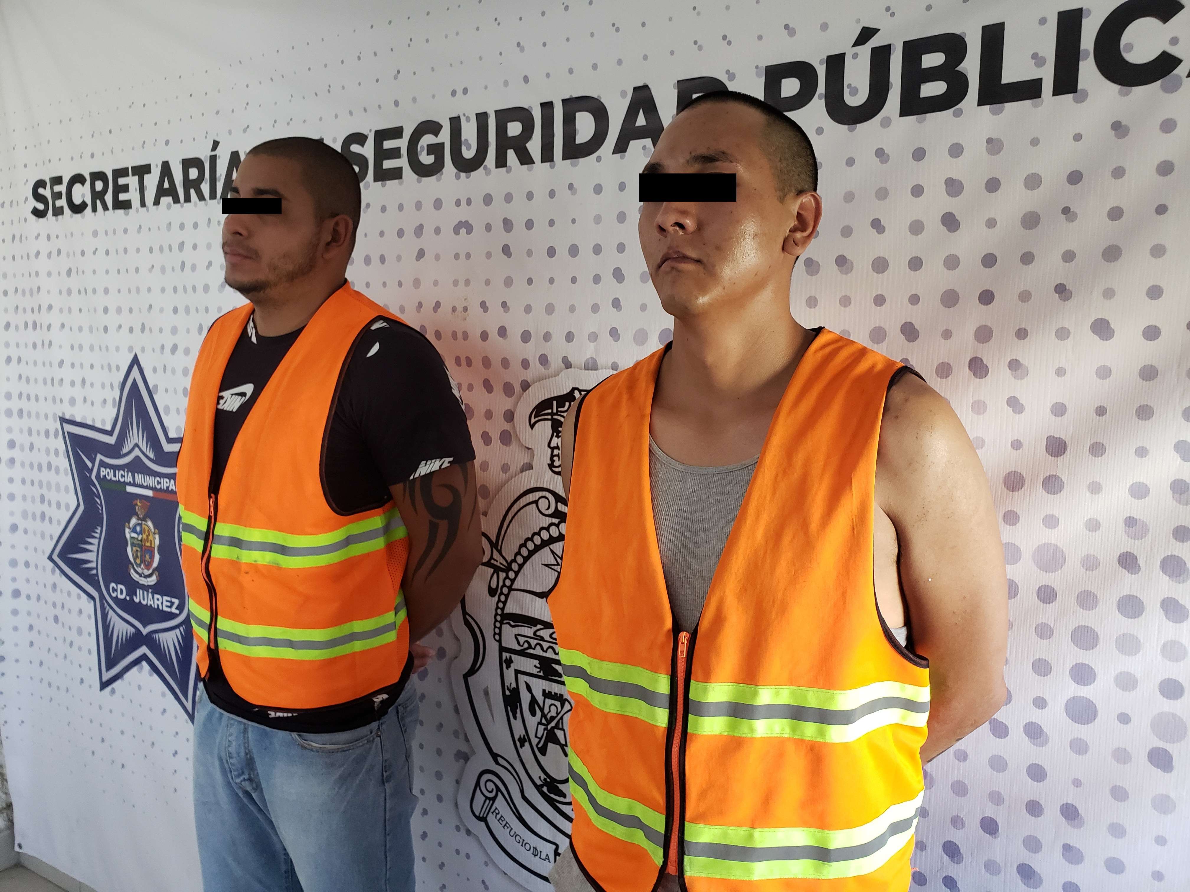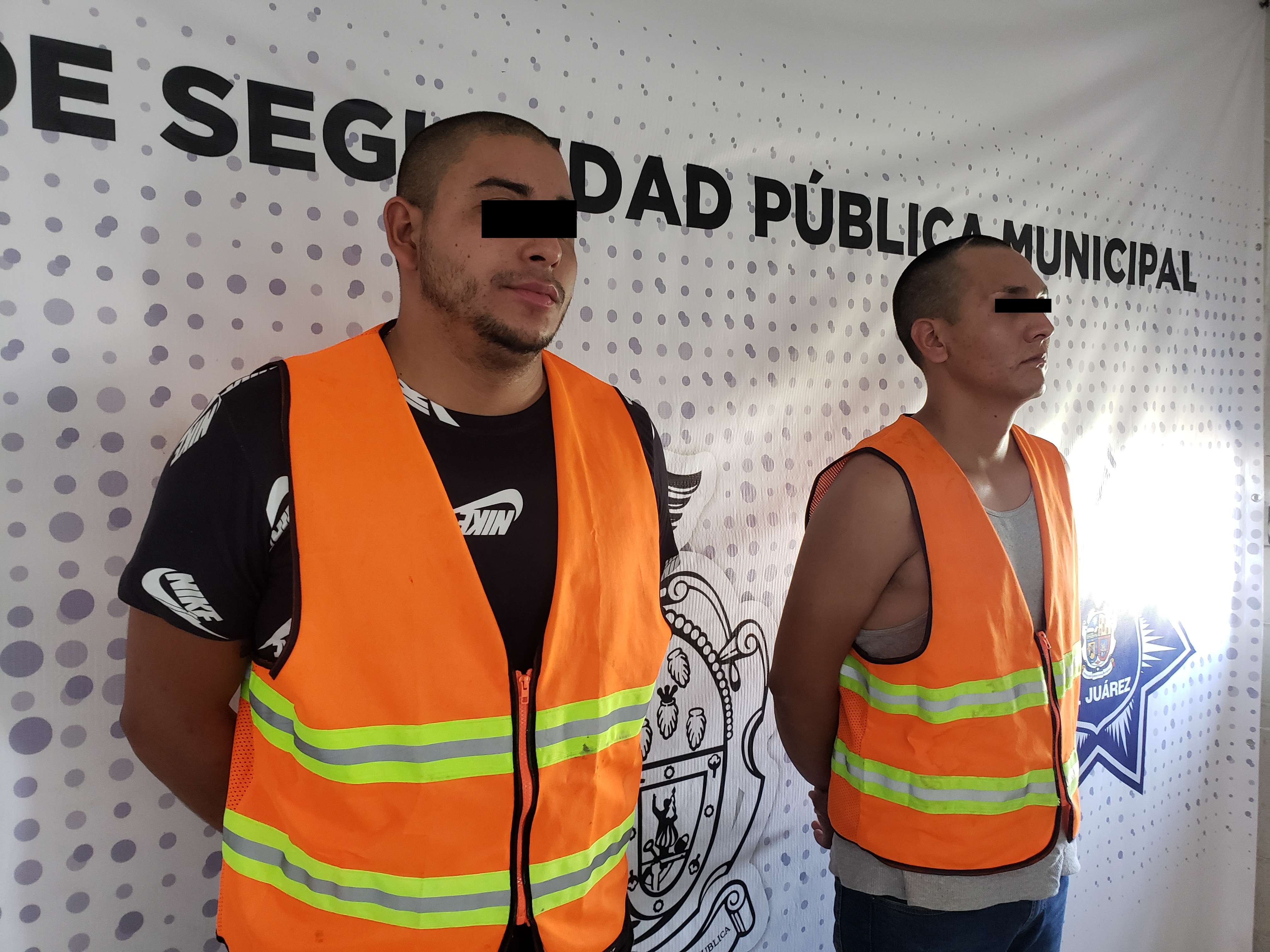 Juárez.- Agentes de la Secretaría de Seguridad Pública Municipal realizaron el arresto de dos integrantes del grupo criminal “La Línea” identificados como Ricardo Iván G. G. y Luis Armando A. C., por su presunta responsabilidad en la comisión de delitos contra la ley federal de armas de fuego y explosivos y promoción de conductas ilícitas.