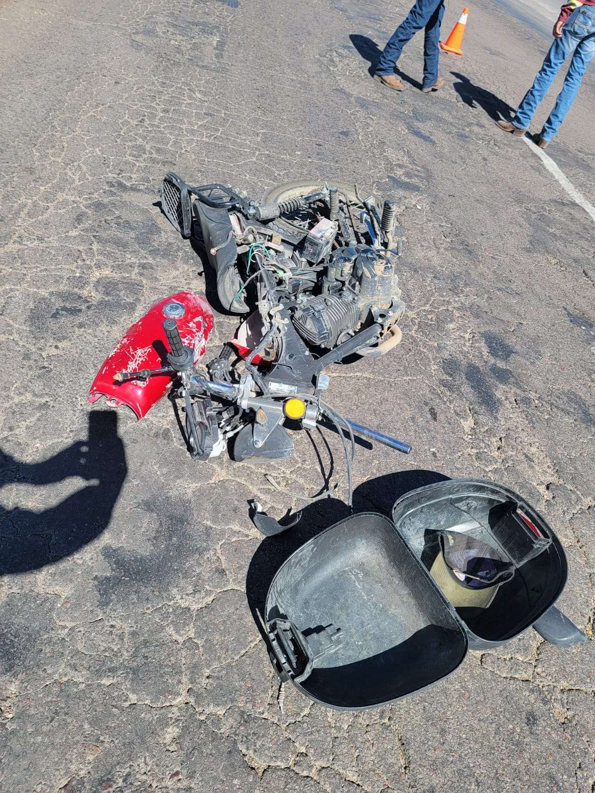 Al llegar al lugar observaron una motocicleta con daños casi totales, de la marca Italika, color rojo con negro, modelo 2018, guiada por Víctor Daniel L.N., de 19 años, originario de San Luis Potosí y con domicilio en Ejido Nuevo Zaragoza, (Los Adobes).