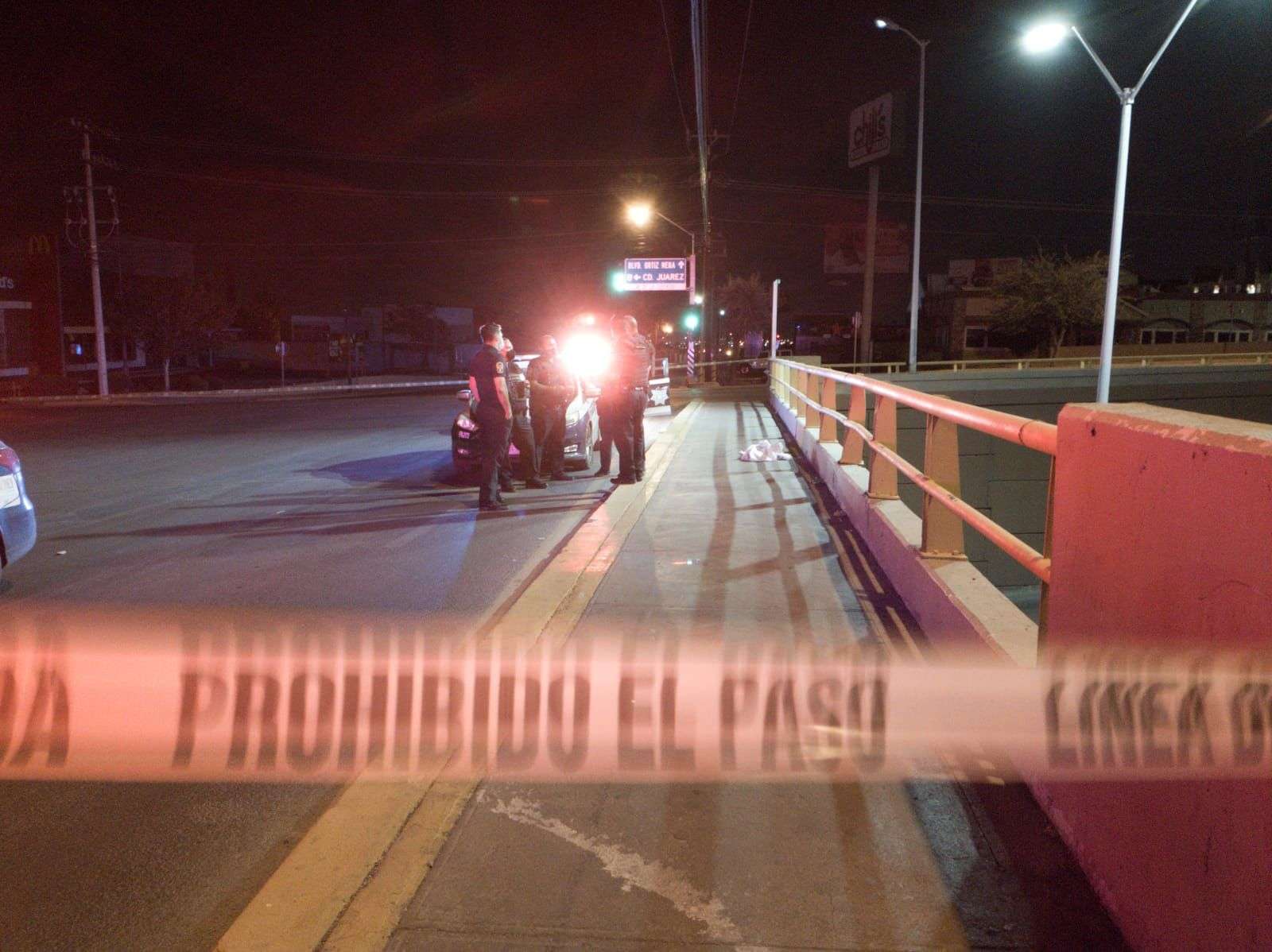 Al lugar arribaron elementos de la policía municipal, de la policía estatal, en donde localizaron la manta la cual estaba amarrada en la valla de contención del puente.