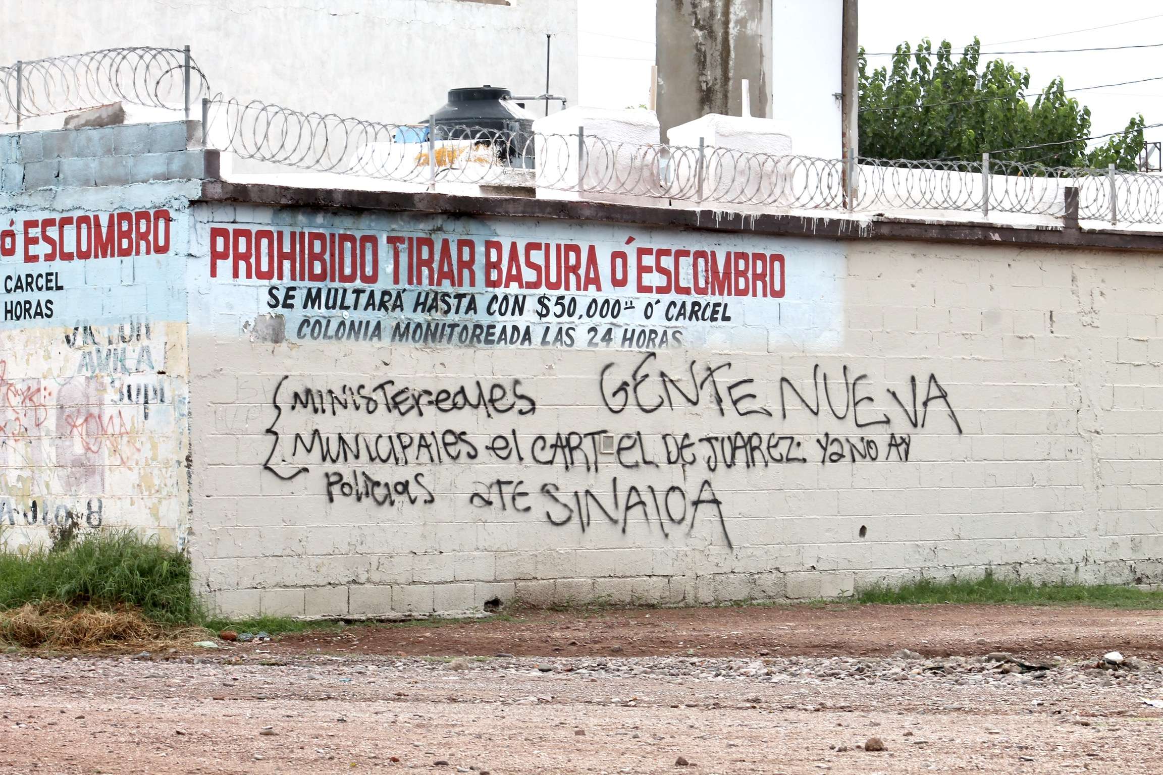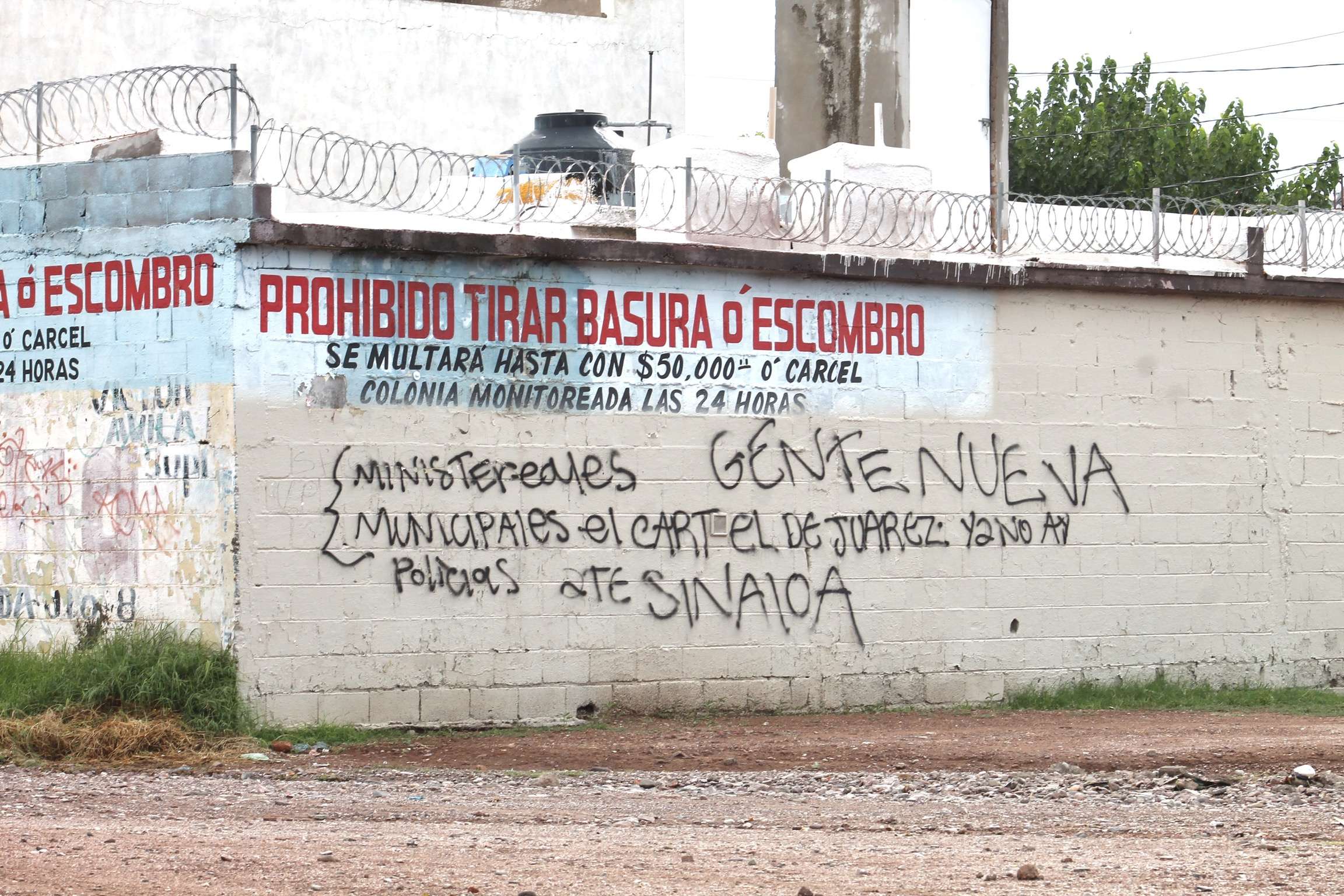 En el cruce de las calles Hacienda Agua Nueva y Villa Potosina, apareció un narco mensaje atribuido al Cartel de Sinaloa, el cual hace alusión a que no existen celulares del Cartel de Juárez aquí.