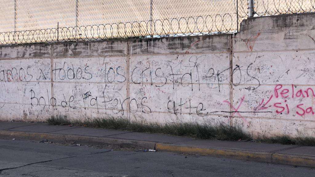 Fue a lo largo de la barda, ubicada en el cruce de la calle García Márquez y avenida de las Industrias, donde pintaron con aerosol de color rojo.