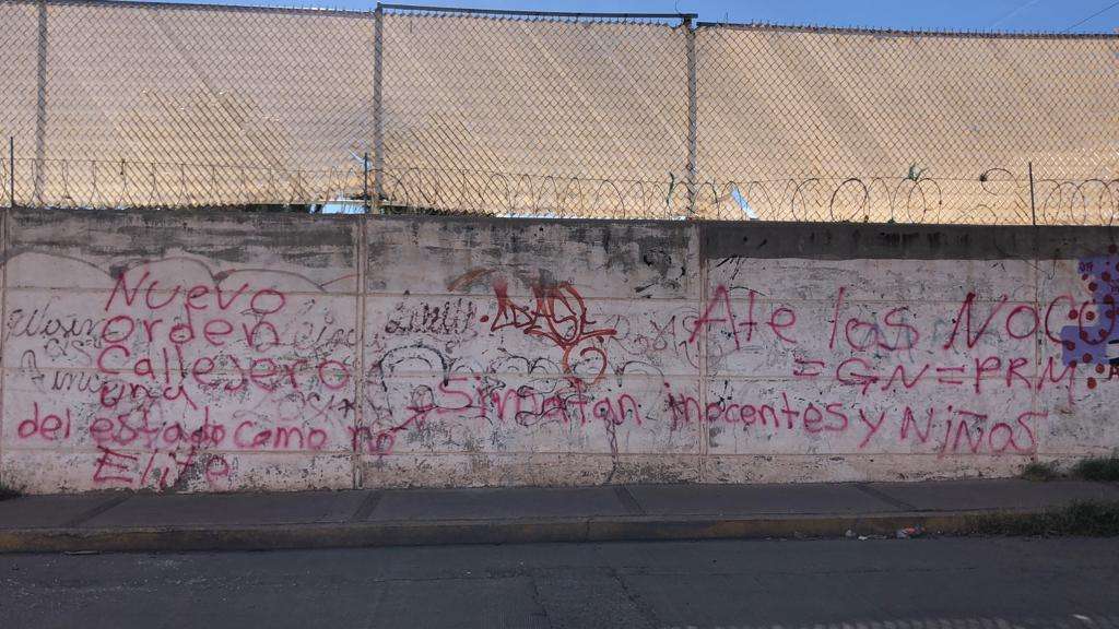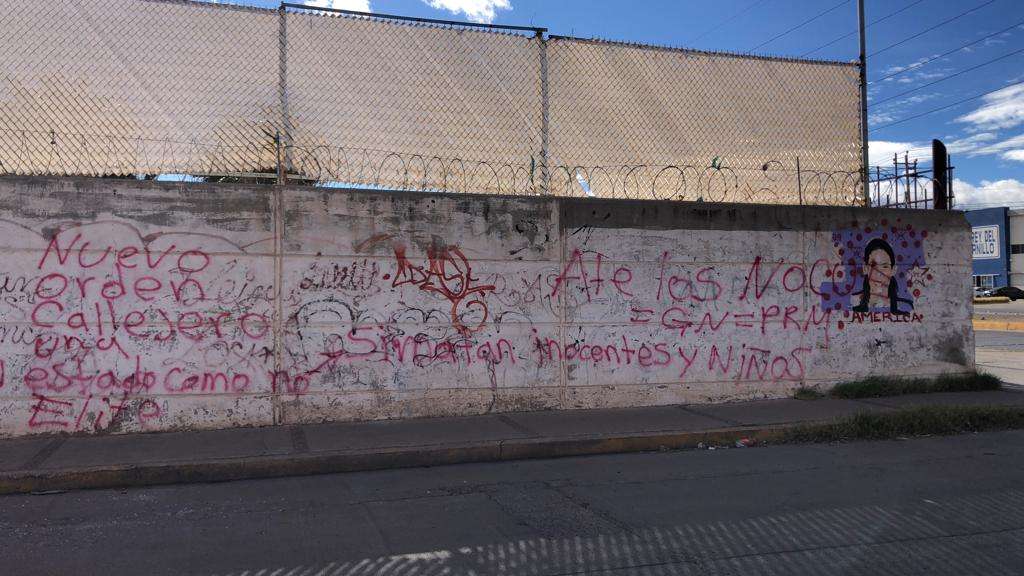 Chihuahua.- Luego del hallazgo de dos narcomantas localizadas anoche en la ciudad, se encontró una pinta con mensajes amenazadores, firmado por “Nuevo Orden Callejero”, en la barda de la empresa Interceramic.