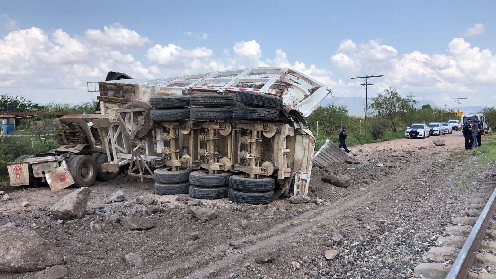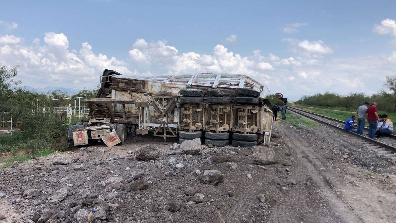 Chihuahua.- Resulraon lesionados dos empleados de interceramic tras impactar el tren a un camión de transportes Sáenz