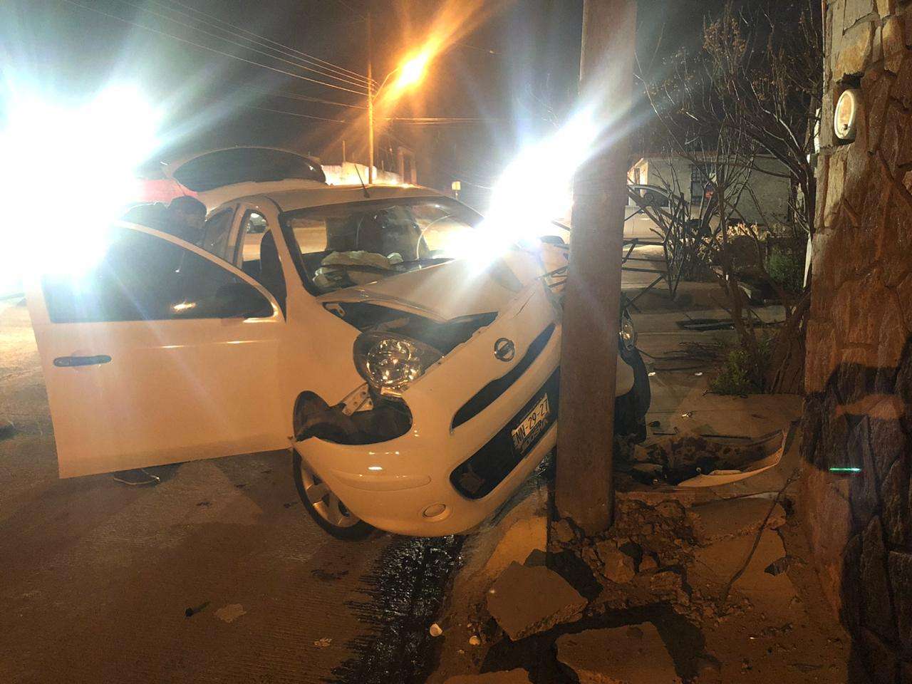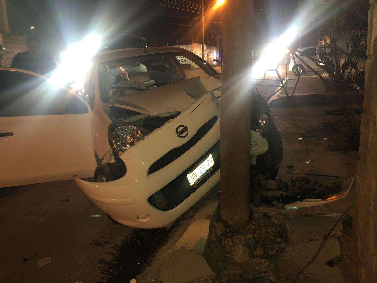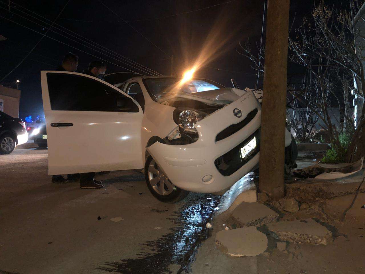 Chihuahua.- La conductora de un vehículo Nissan March color blanco perdió el control e impactó contra un poste en las inmediaciones de la colonia Granjas Cerro Grande al sur de la ciudad, lo que generó una movilización de elementos viales y paramédicos.