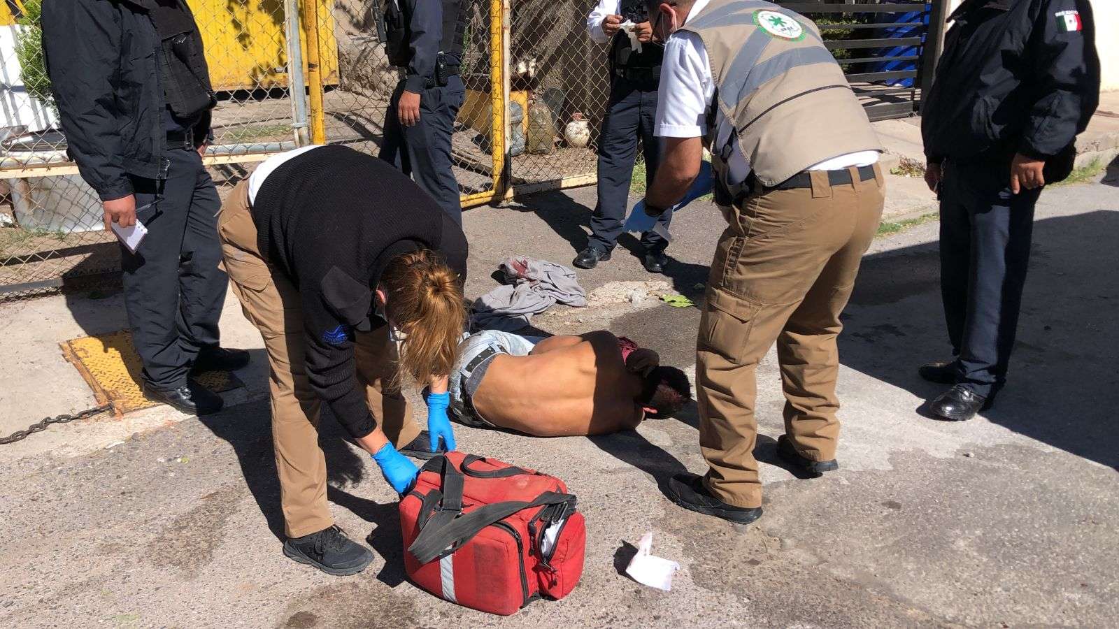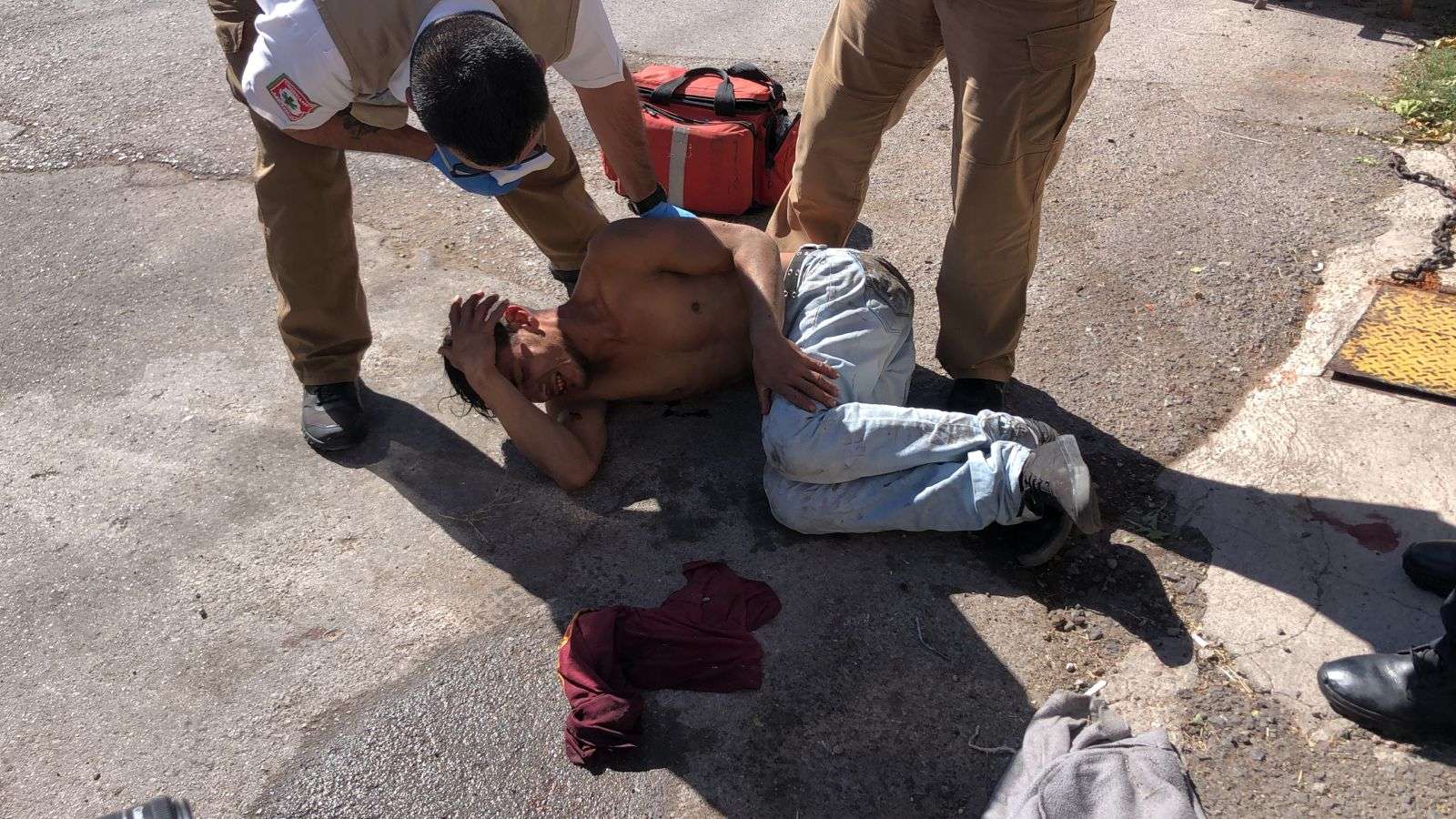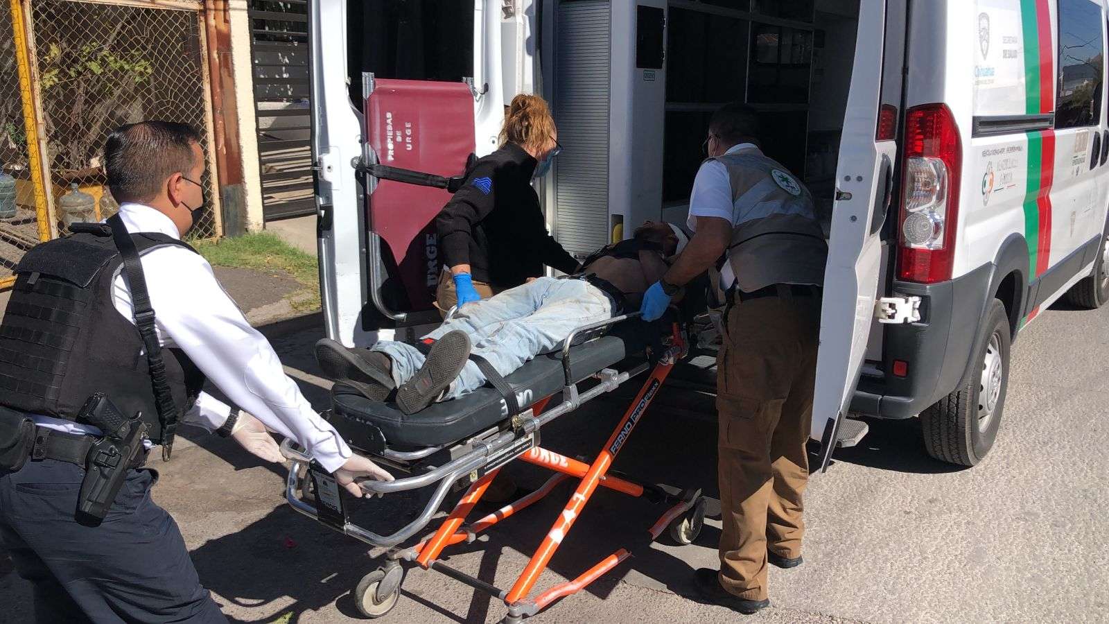 Posteriormente paramédicos de URGE le brindaron los primeros auxilios, al subirlo a la ambulancia el sujeto se puso bastante agresivo.