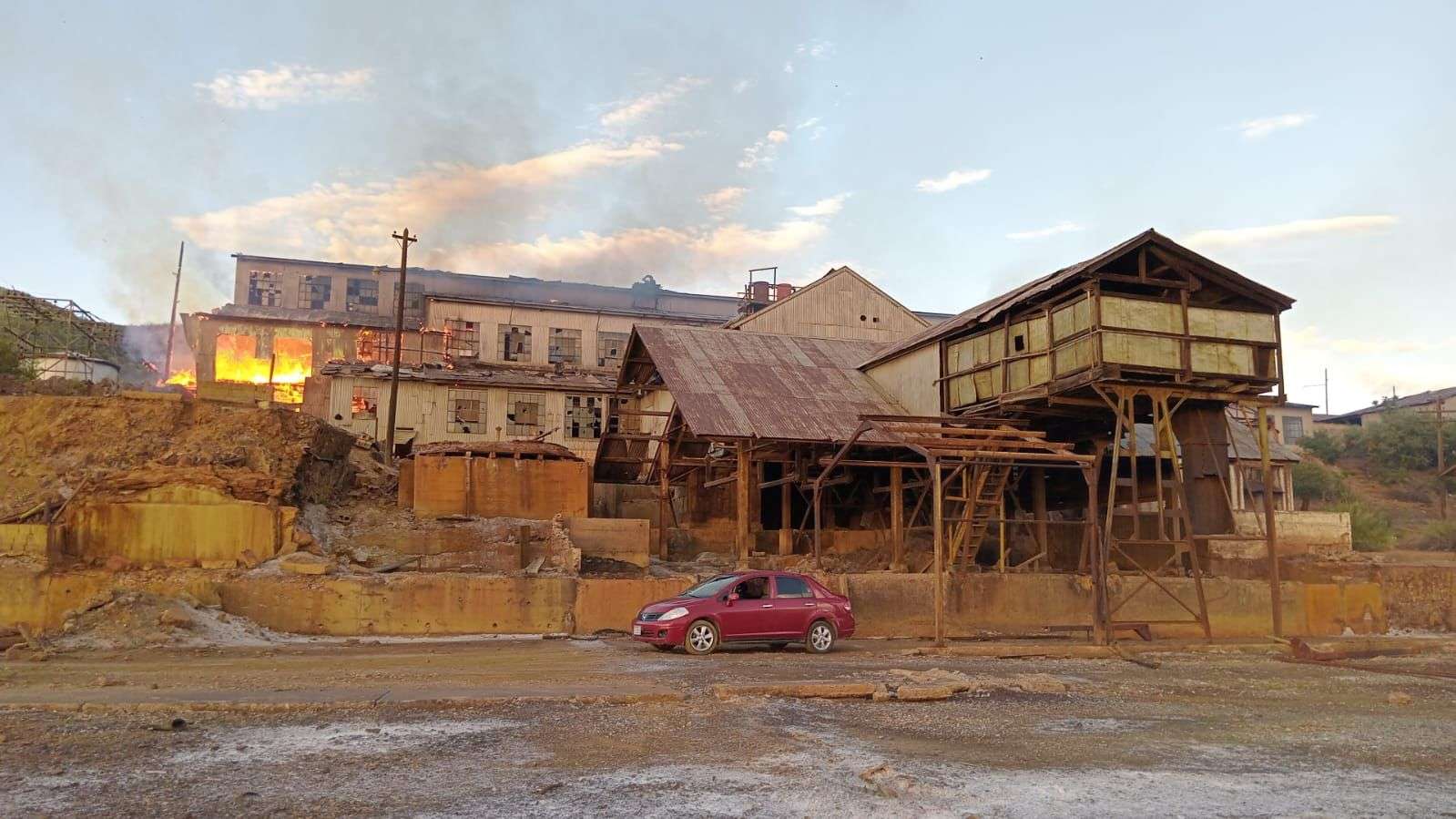 Chihuahua, Chih.- Autoridades del Municipio de Aquiles Serdán lograron sofocar el voraz incendio que consumía las instalaciones abandonadas de una mina.