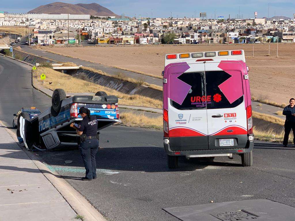 Chihuahua, Chih.- la mañana de este domingo 12 de marzo se registro un aparatoso accidente en el cual una unidad de la Policía Municipal se vio involucrada.