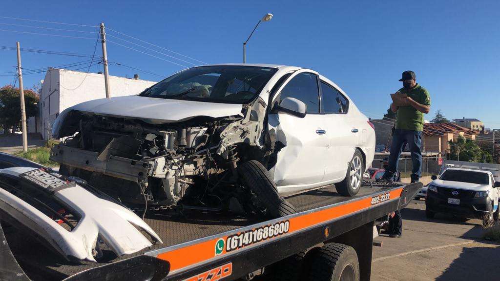 Chihuahua.- Se presentó un accidente vehicular cuando un adulto mayor perdió el control de su auto y terminó impactándose contra la barra de contención del Canal.