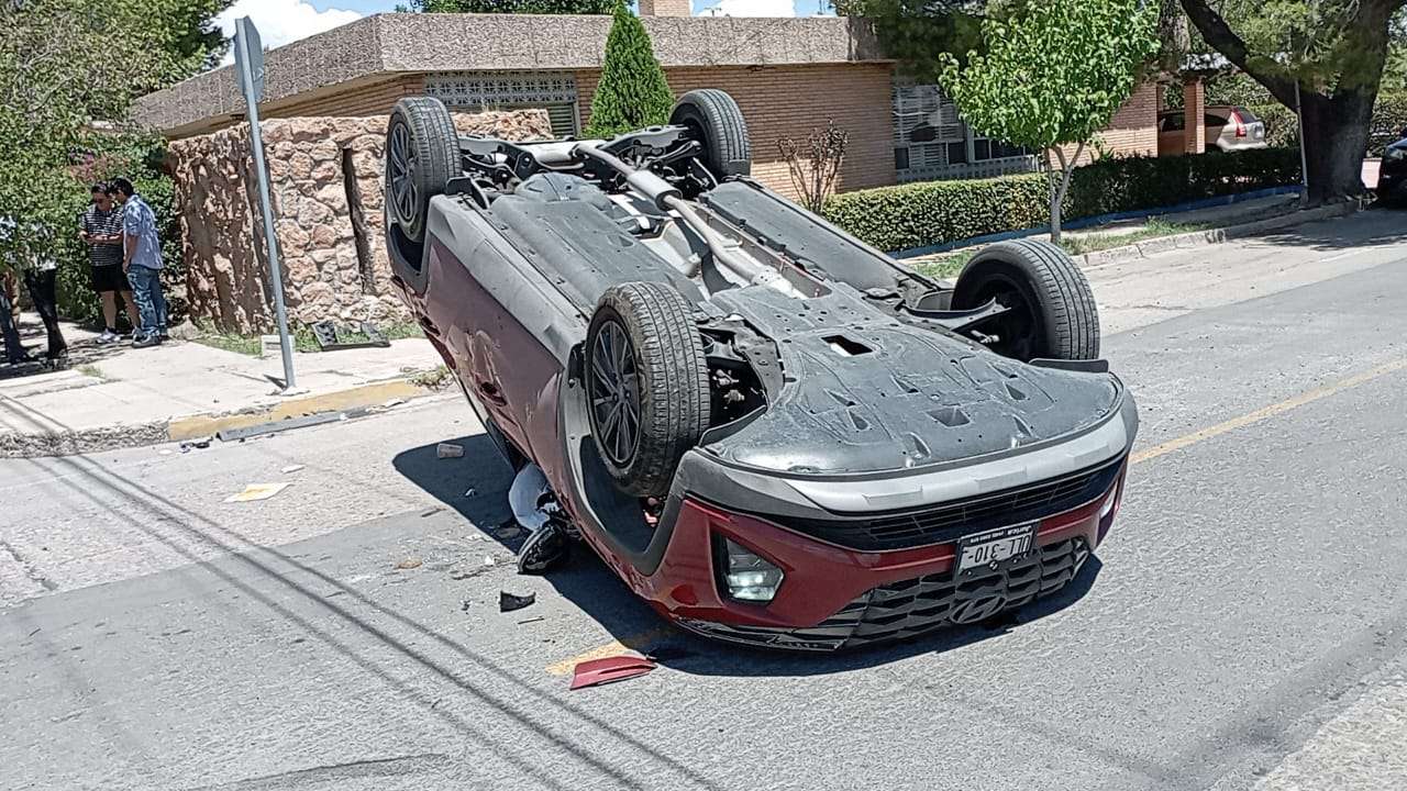 Chihuahua, Chih. - Un accidente vehicular con volcadura dejó como consecuencia a una mujer lesionada en el cruce de las calles Ortiz de Campos y Juan Felipe Orozco, en la colonia San Felipe.