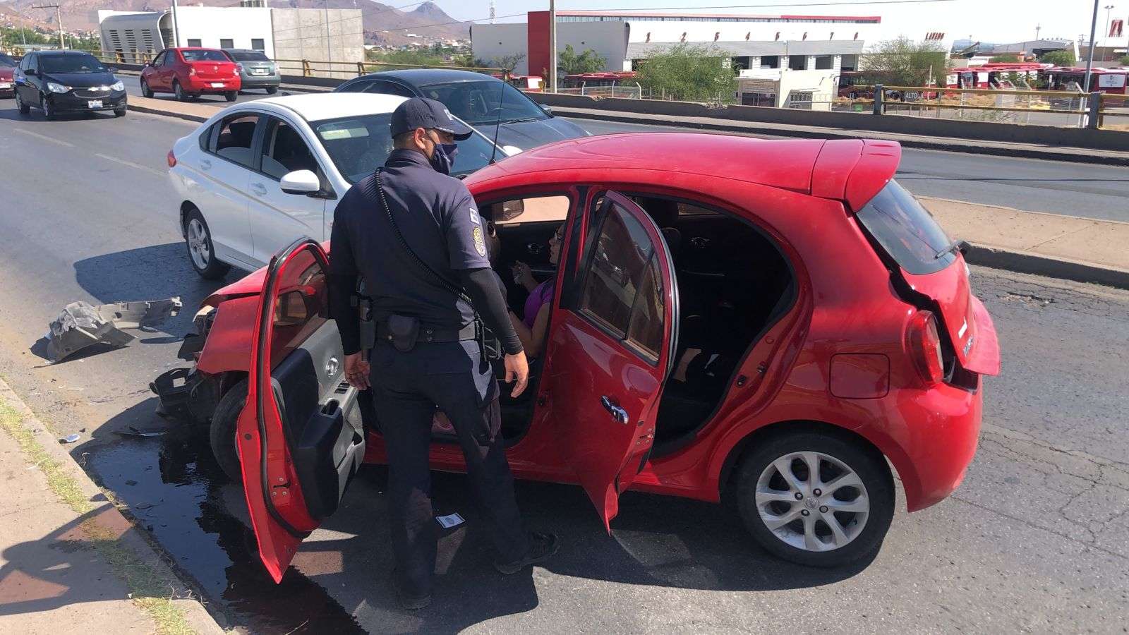 Agentes de la Policía Municipal fueron los primeros en llegar al lugar, solicitando la presencia de paramédicos para atender a la conductora del Nissan march, pues resultó lesionada tras el choque.