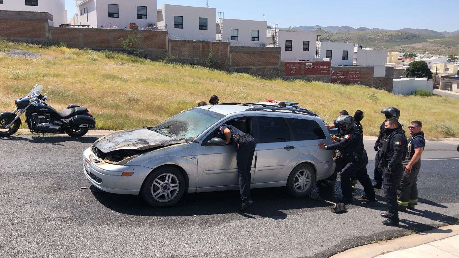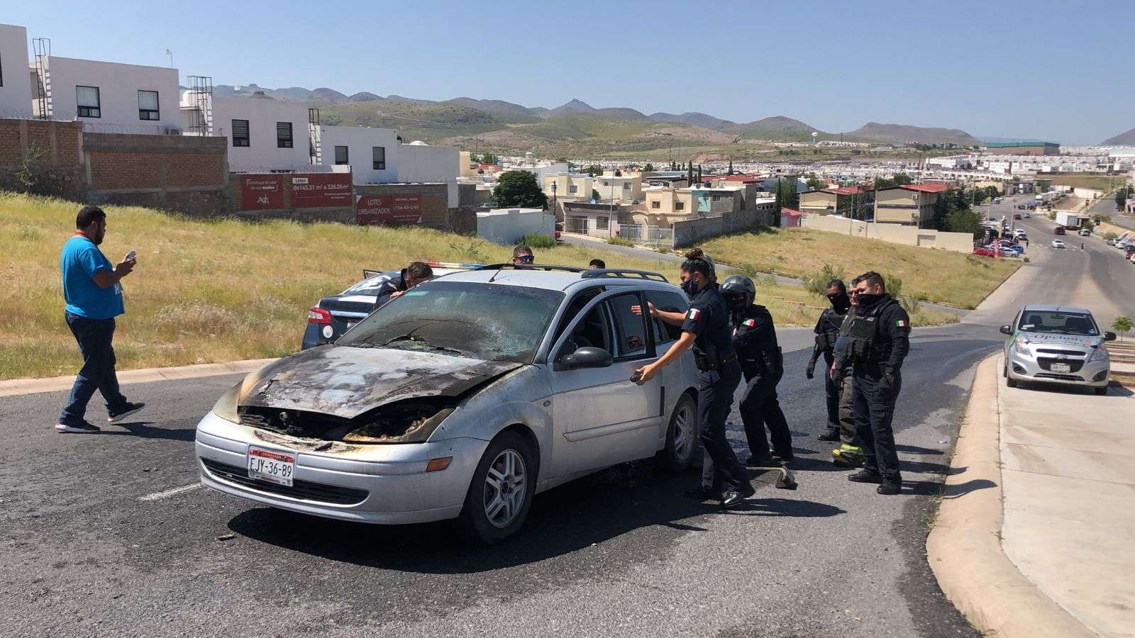 Chihuahua.- Un vehículo se incendió sobre las calles Paseos de la Universidad y Calzada del Bosque en el fraccionamiento Bosques de San Pedro.
