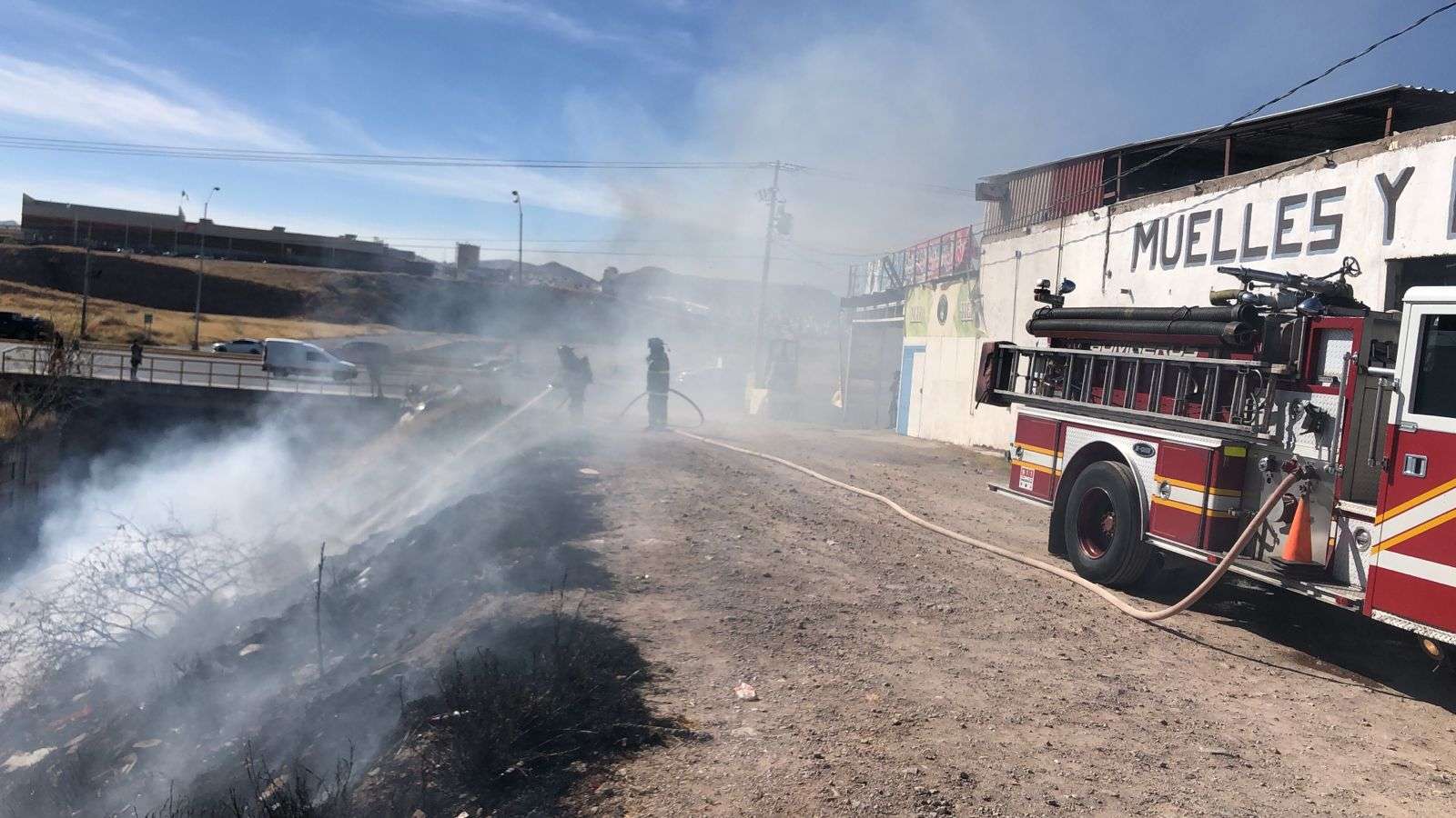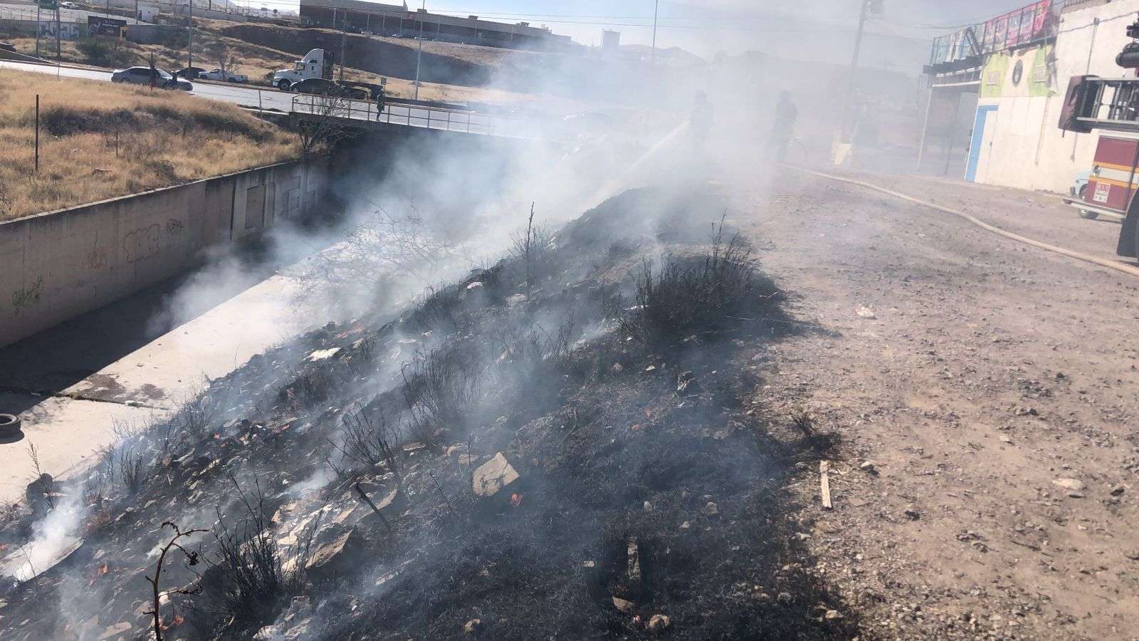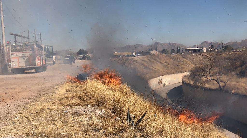 Chihuahua.- El incendio de un predio a un costado del canal generó la movilización de unidades de Seguridad.