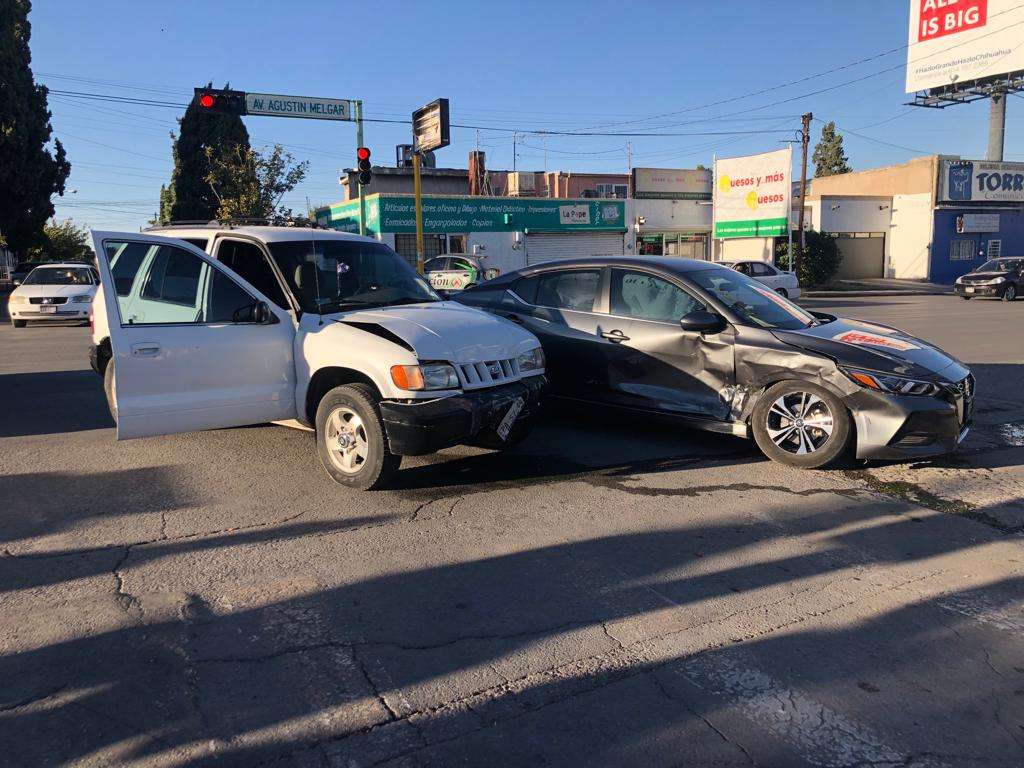 Chihuahua. - Un percance vial entre dos vehículos se registró sobre la avenida Agustín Melgar y Miguel Shultz la tarde de este martes.