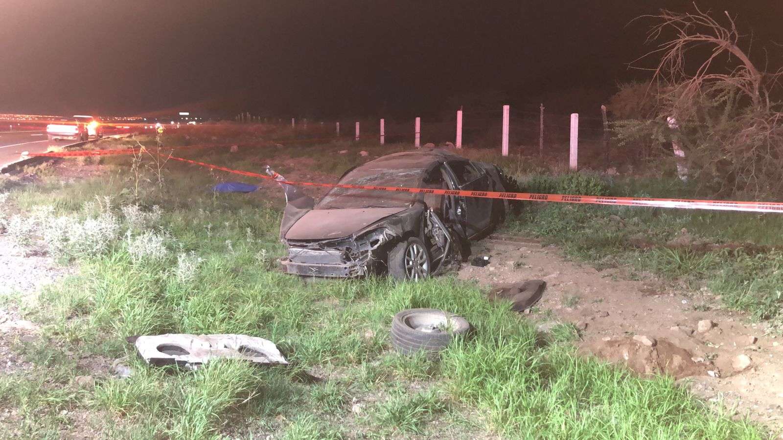 Chihuahua.- El conductor de un vehículo Chevrolet Malibú fue participe de una aparatosa volcadura, quien perdió el control del volante y salío de la carretera para dar varias volteretas la cual cobró la vida de un joven, resultando tres más heridos sobre la carretera Delicias a Chihuahua.